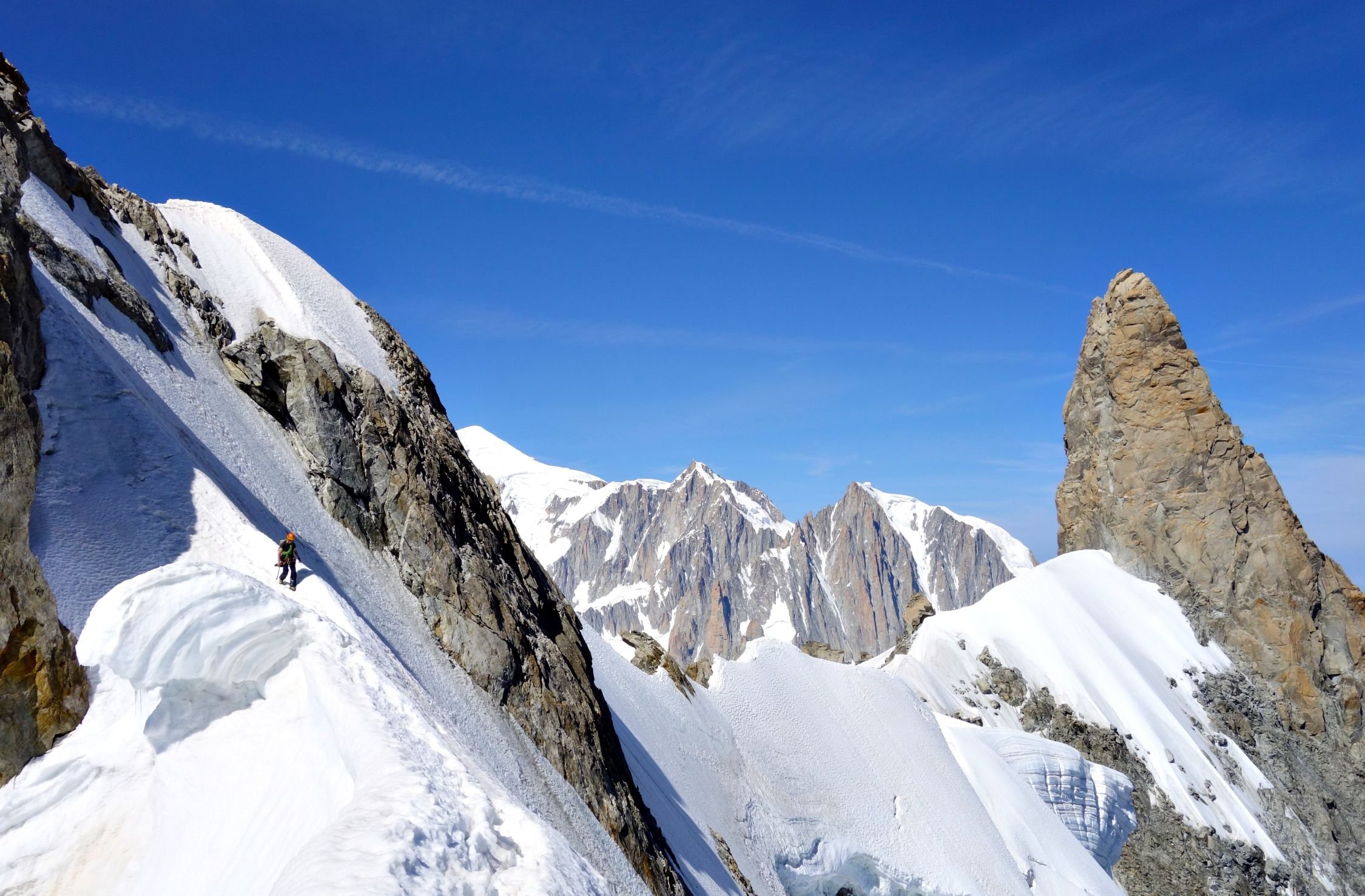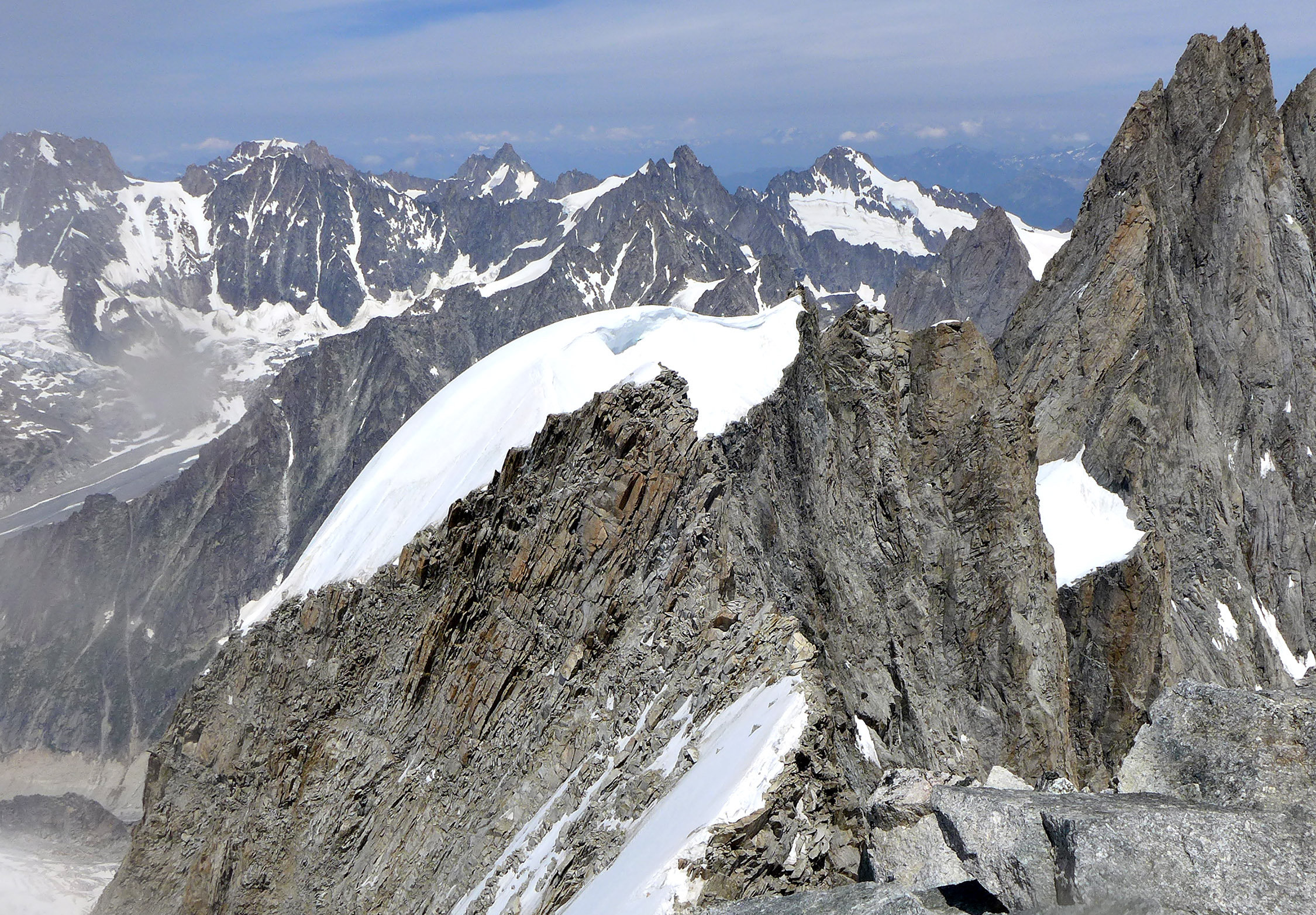 Grand Jorasses war im Anschluss geplant, jedoch war uns der Abstieg in der Mittagssonne zu heikel. (vgl. Fotos.). Daher Abstieg nach Montenvers.