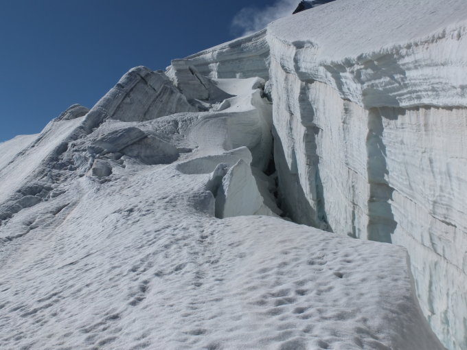 Insgesamt gute Verhältnisse, auf versteckte Gletscherspalten muss geachtet werden.