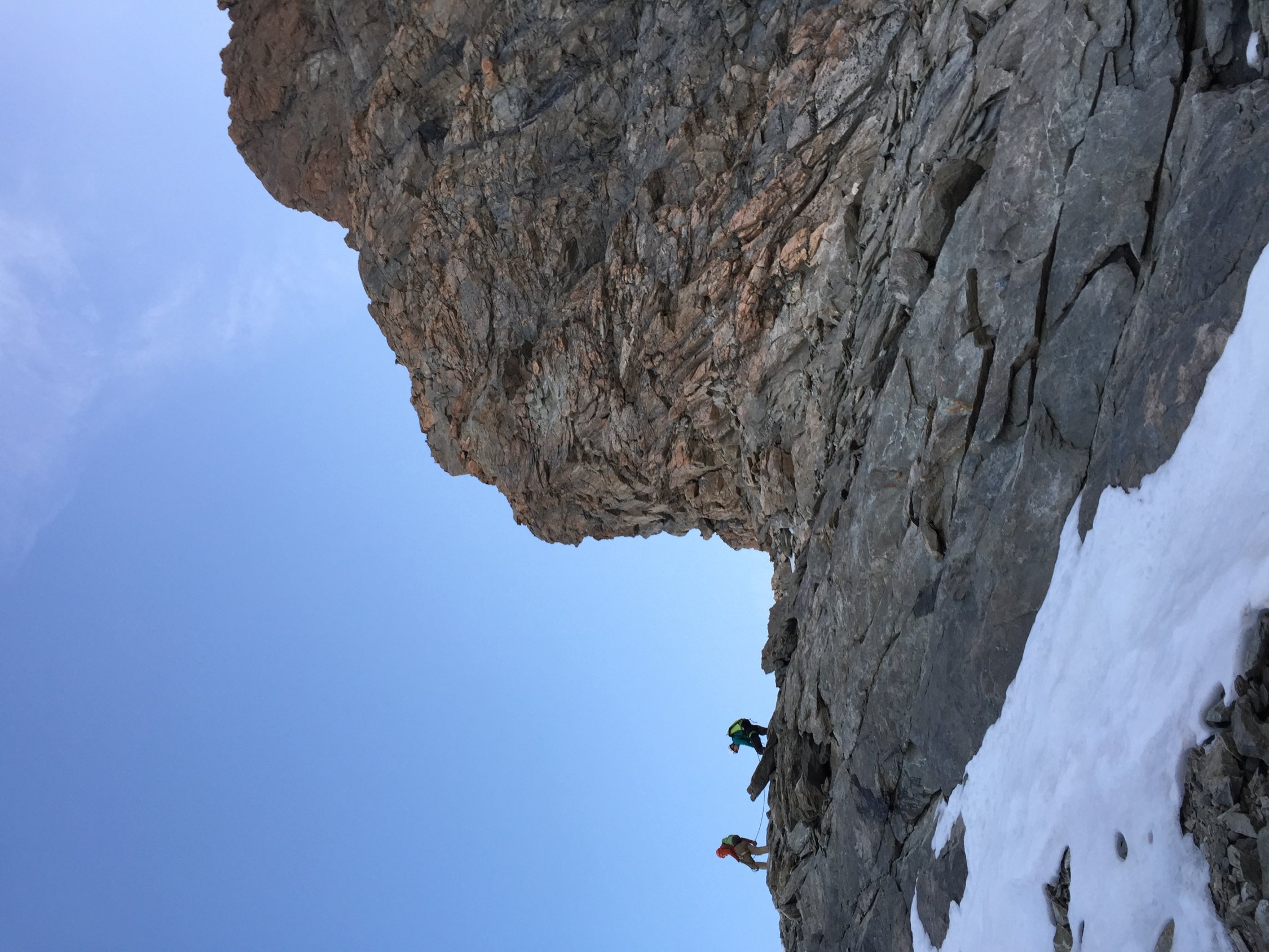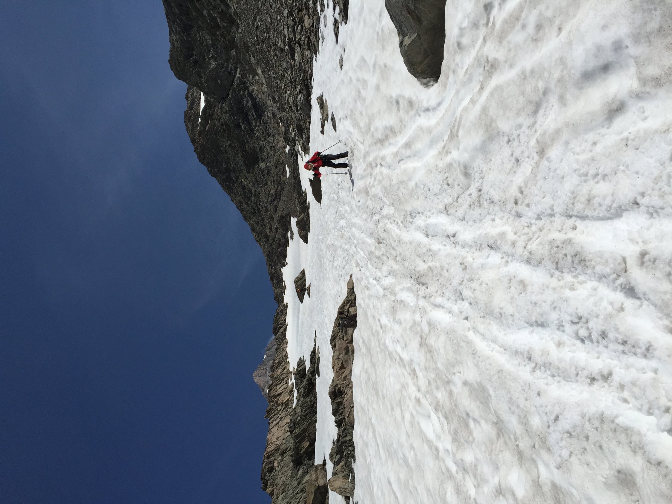 sehr gute Verhältnisse. Firn im Aufstieg trägt. Schrund kein Problem. Rampe unten noch mit Schnee. Oben ausgeapert. Der übrige Grat komplett schneefrei und trocken.