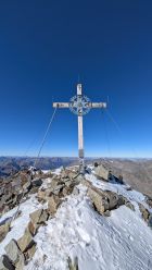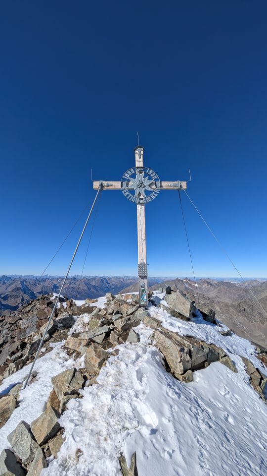 Traumhafte Bedingungen am zweithöchsten Stubaier. Ostgrat hat mehr Schnee wie Westgrat, ist aber (jetzt) beides gespurt. Eine "heikle" Stelle gibt es ca 50m unterhalb des Gipfels, hier wären Steigeisen empfehlenswert, geht aber auch mit Grödeln. Gamaschen am besten auch einpacken :)