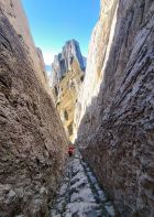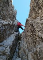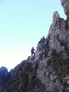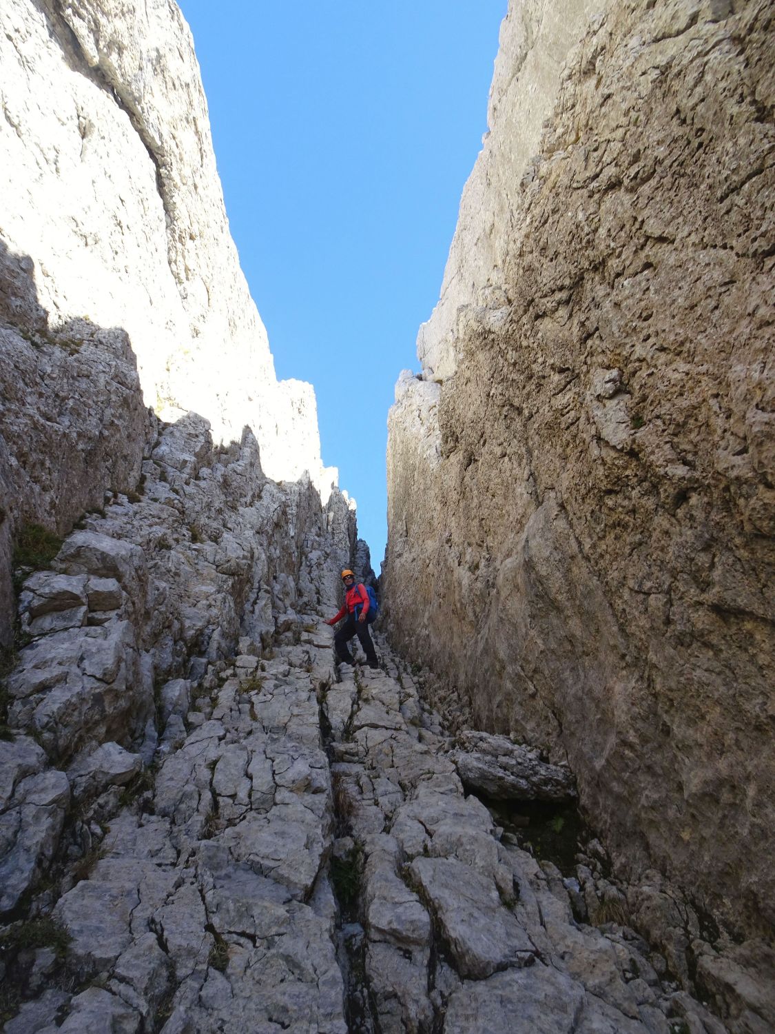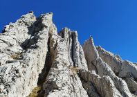 Ganze Route schneefrei. Wege bis auf wenige schattige Stellen trocken und gut begehbar. Gipfelaufstieg in griffigem und meist festem Fels. Der Zustieg in die Scharte erfordert etwas Vorsicht, war aber nicht rutschig, obwohl um diese Jahreszeit keine Sonne mehr hinkommt.