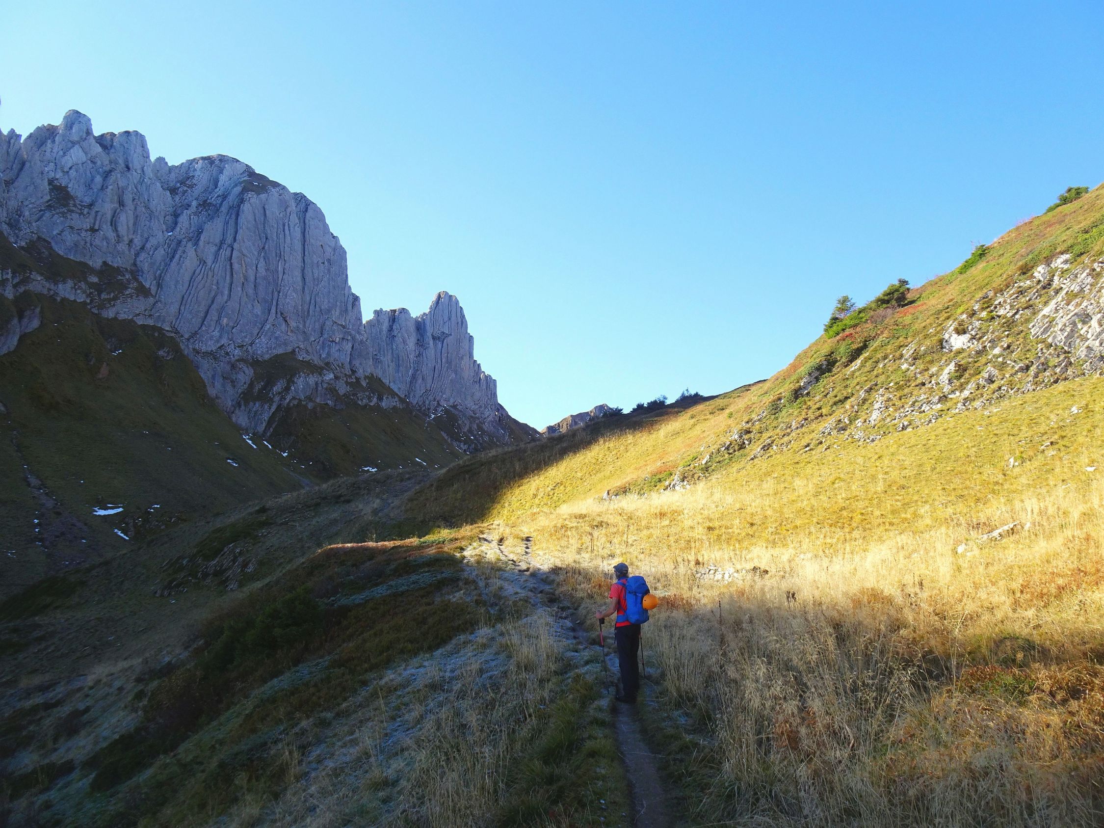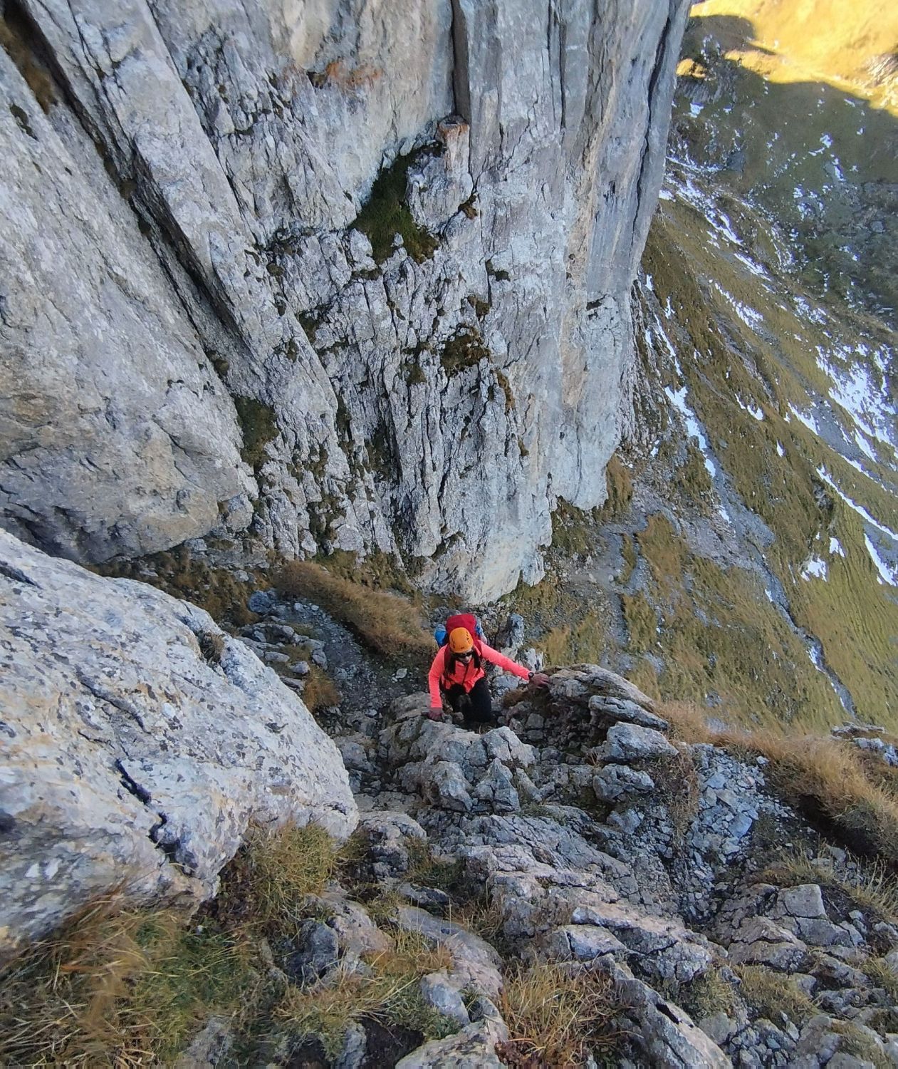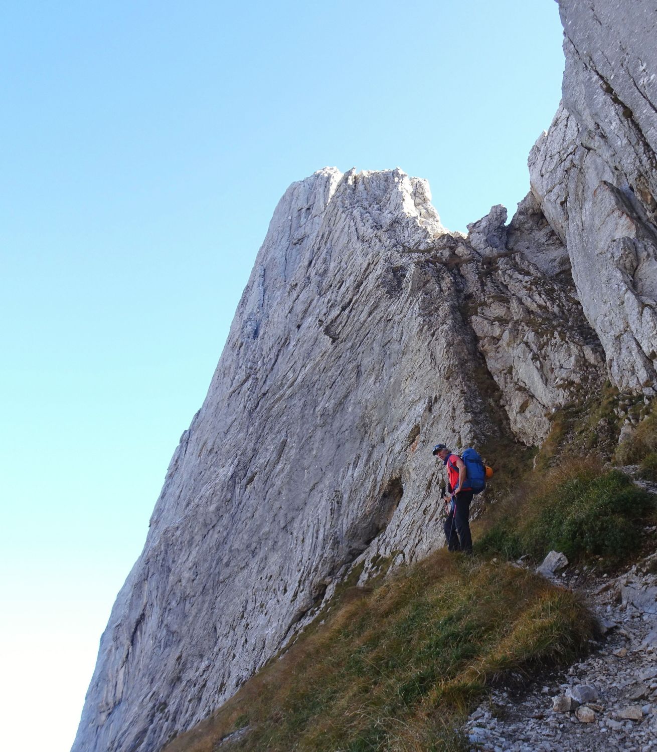 Einige Wanderer am Höhenweg unterwegs und mehrere Seilschaften am Schmalen Südrippli des Kreuzbergs. Im Auf- und Abstieg nur wenige Leute getroffen. Prächtiger Herbsttag - vermutlich einer der letzten mit so guten Verhältnissen...