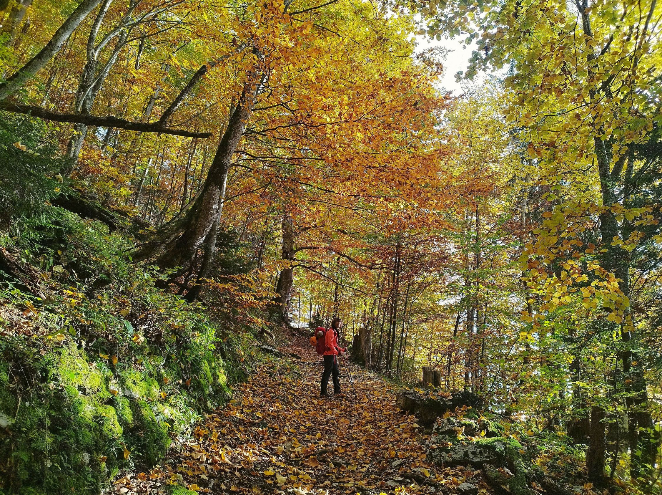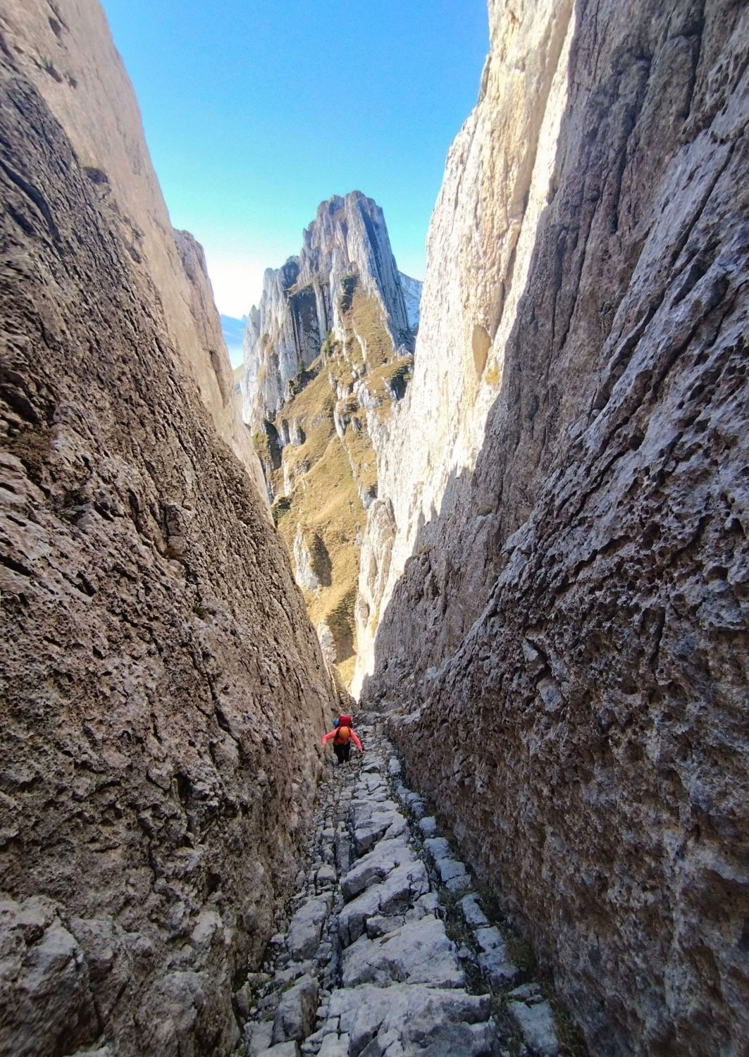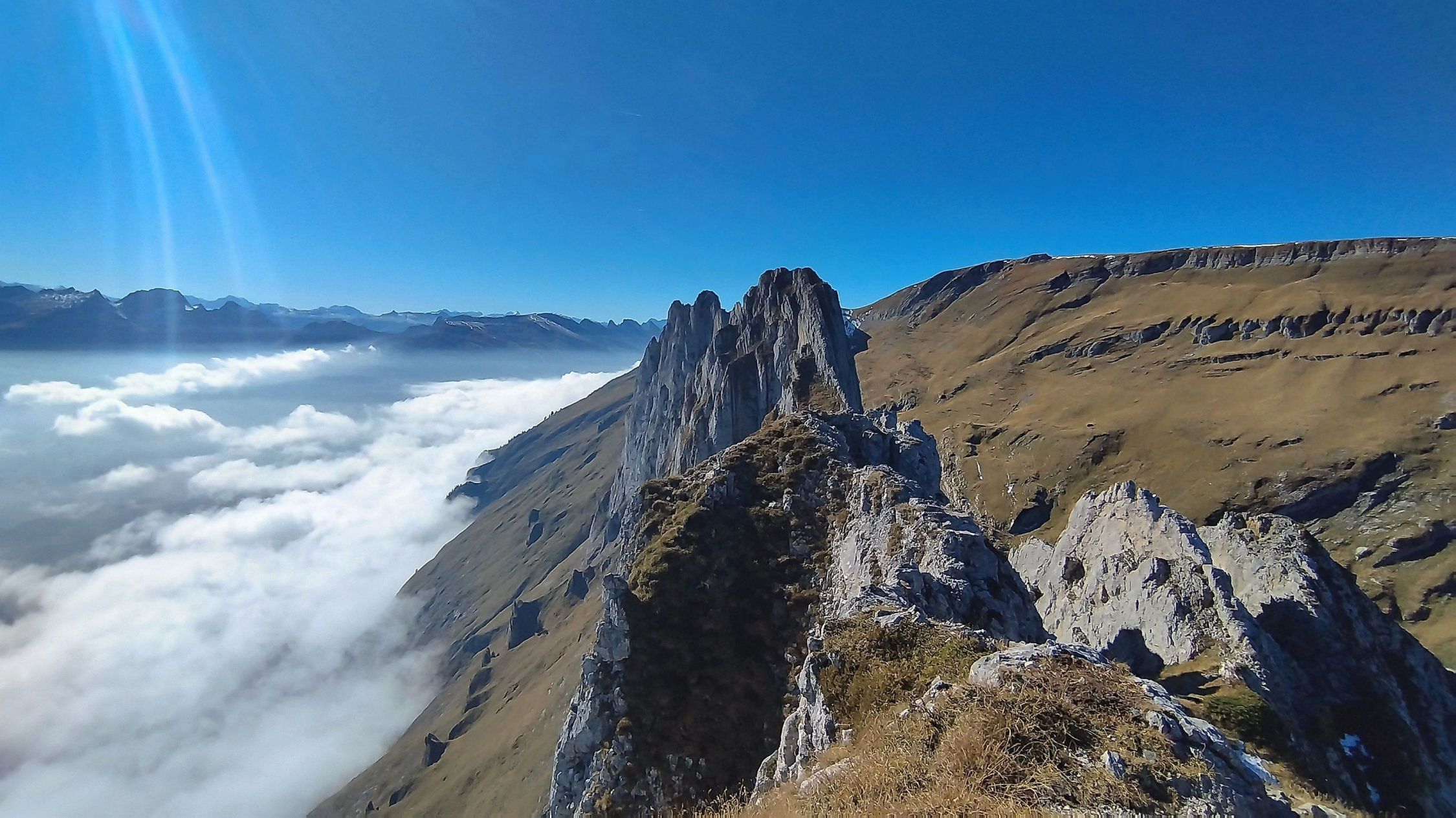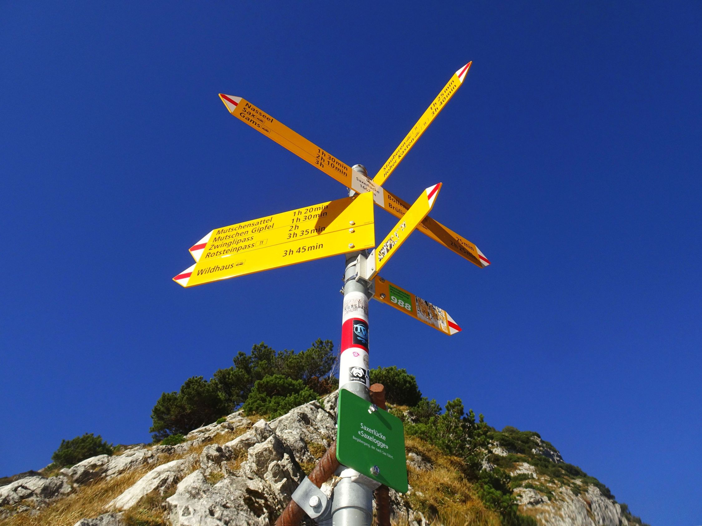 Einige Wanderer am Höhenweg unterwegs und mehrere Seilschaften am Schmalen Südrippli des Kreuzbergs. Im Auf- und Abstieg nur wenige Leute getroffen. Prächtiger Herbsttag - vermutlich einer der letzten mit so guten Verhältnissen...