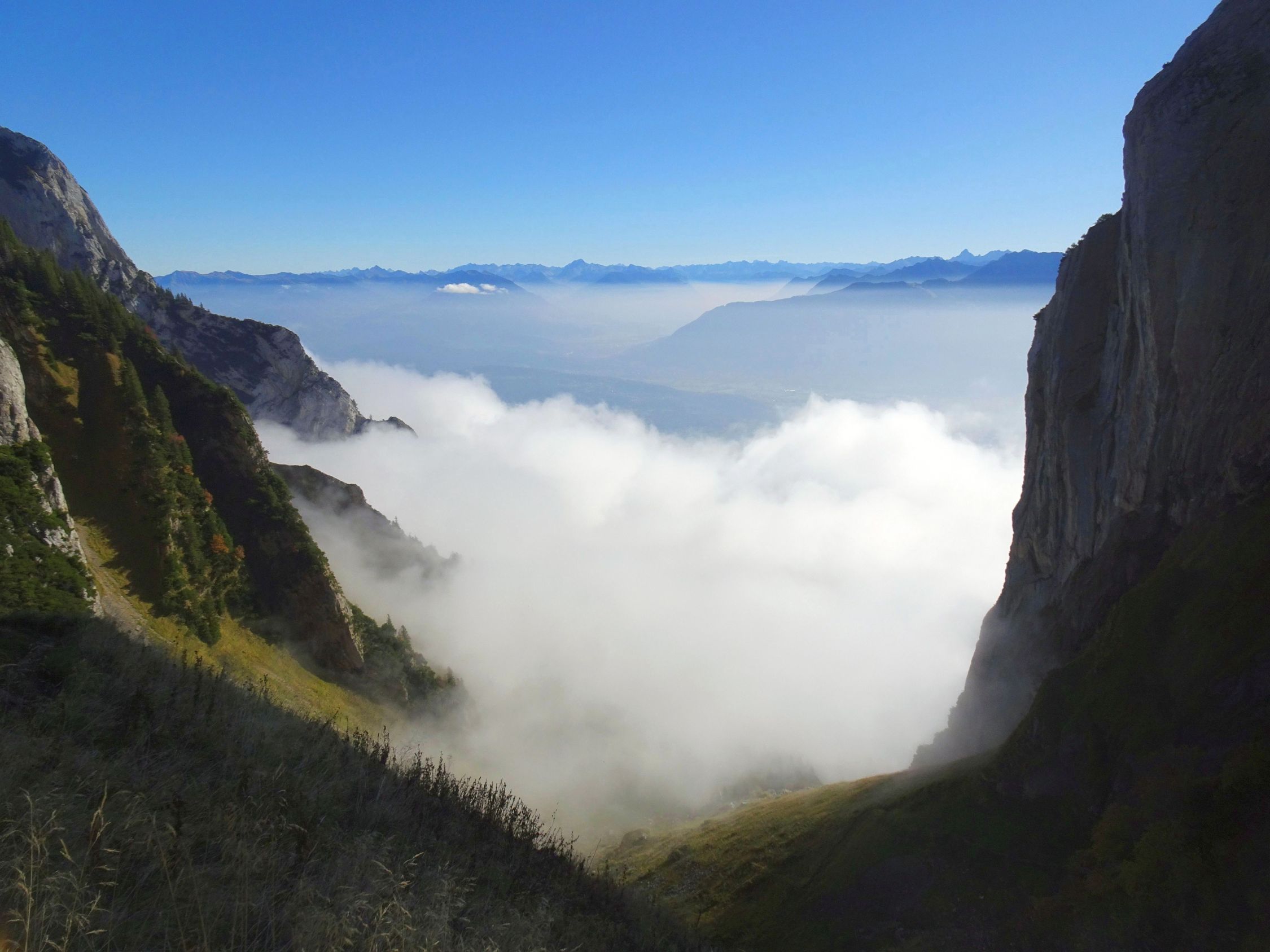 Nach sonnigem Start im Rheintal nach oben hin zunehmend neblig. Kurz vor der Saxerlücke kam man über die Nebelgrenze. In der Sonne angenehme Temperaturen, schattseitig recht frisch. Der Nebel an den Osthängen hat sich bis Mittag gehalten, die Seite von Brülisau hingegen war schon morgens frei.