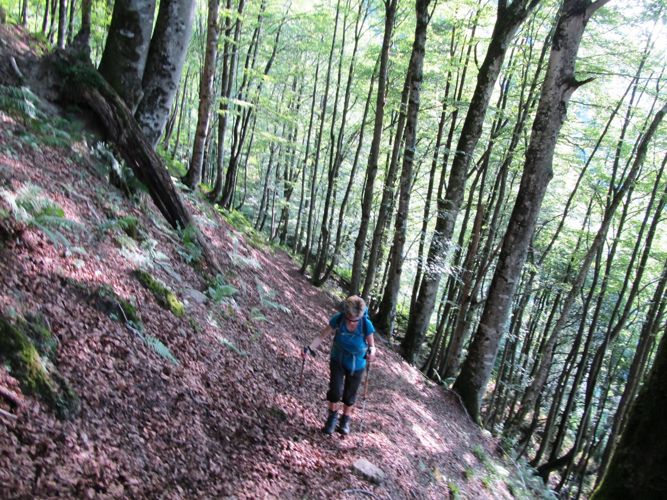 Von einzelnen "Sumpflöchern" abgesehen, war der erdige Bergweg durchweg trocken. Durch die ordentliche Steilheit werden effizient Höhenmeter "vernichtet". Schöne Routenführung! Mit einem frühen Start wollten wir drohenden Gewittern entgehen. Bis in den späteren Vormittag war es recht sonnig. Düstere Wolken um die Mittagszeit ließen Böses erahnen, aber wir wurden bis zum Schluss von Regen, Blitz und Donner verschont.