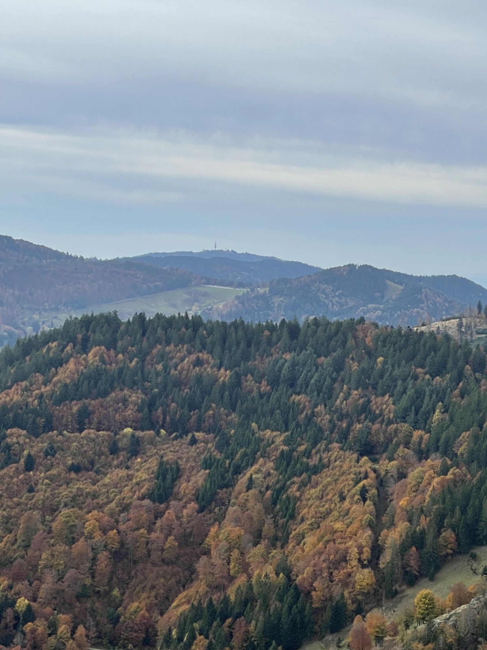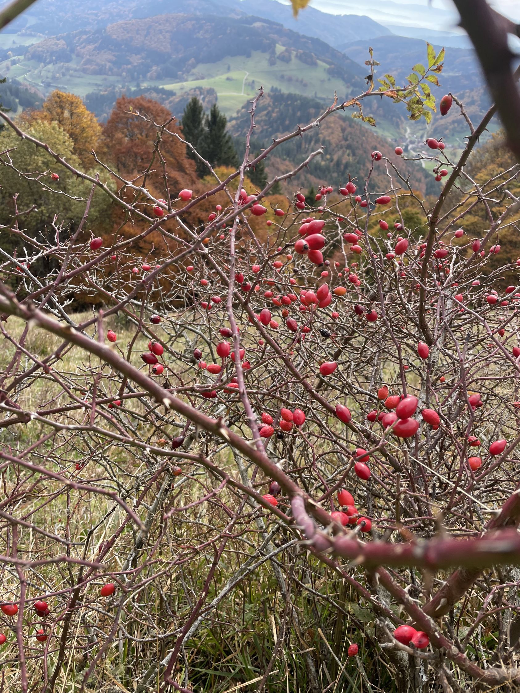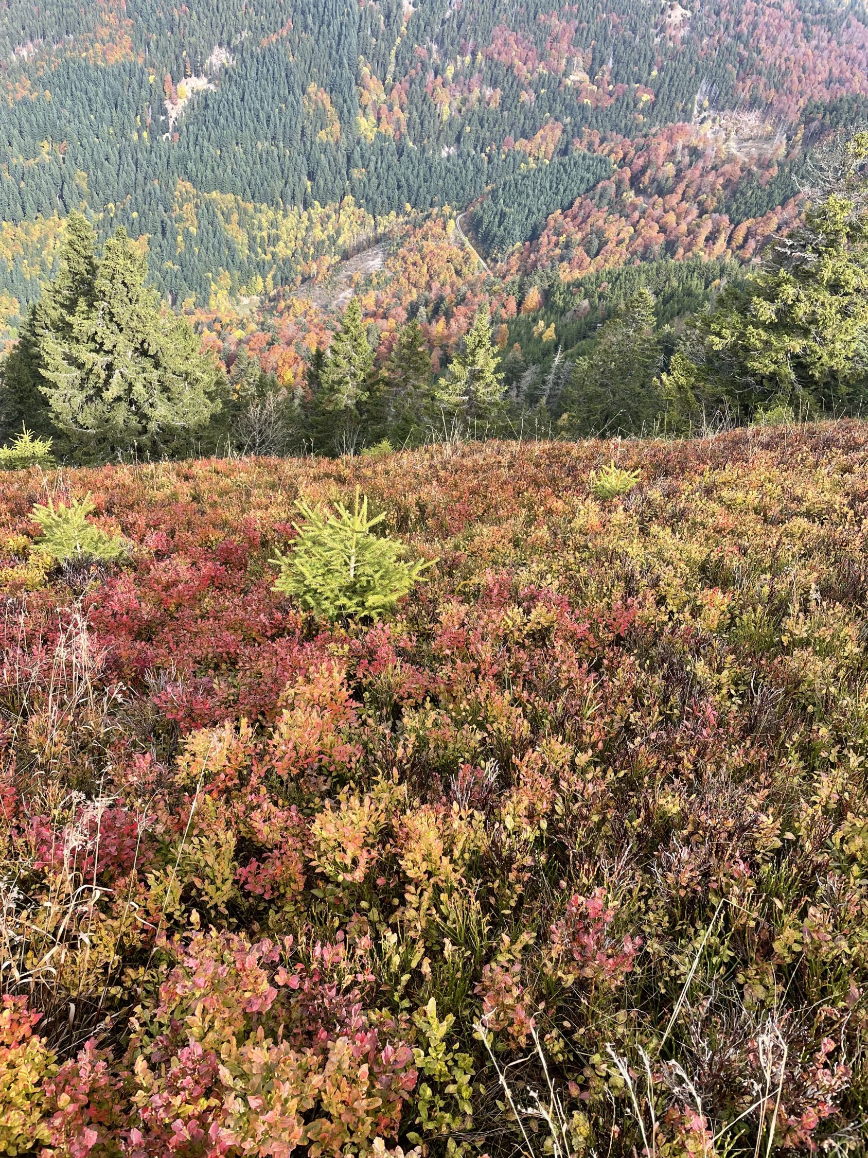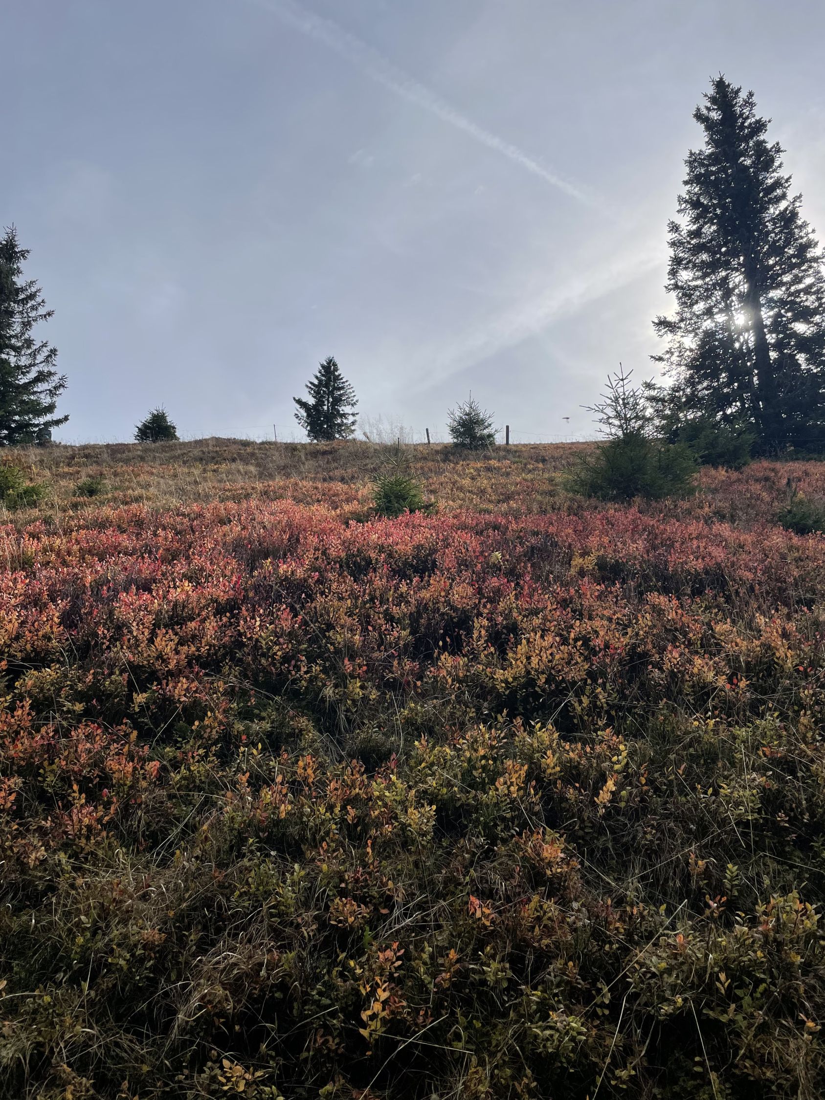 Vielleicht der letzte Tag mit den schönstmöglichen Herbstfarben! Sogar die Heidelbeerfelder Richtung Krinne waren rotorange verfärbt. Es gab auch dunstige Alpensicht. Natürlich hatte es heute relativ viele Wanderer auf der Strecke und viel Volk am Gipfel. Trotzdem unterwegs mehrheitlich ruhig. Temperaturen angenehm, 11 Grad beim Start in Hau. Oben mit Wind frisch.