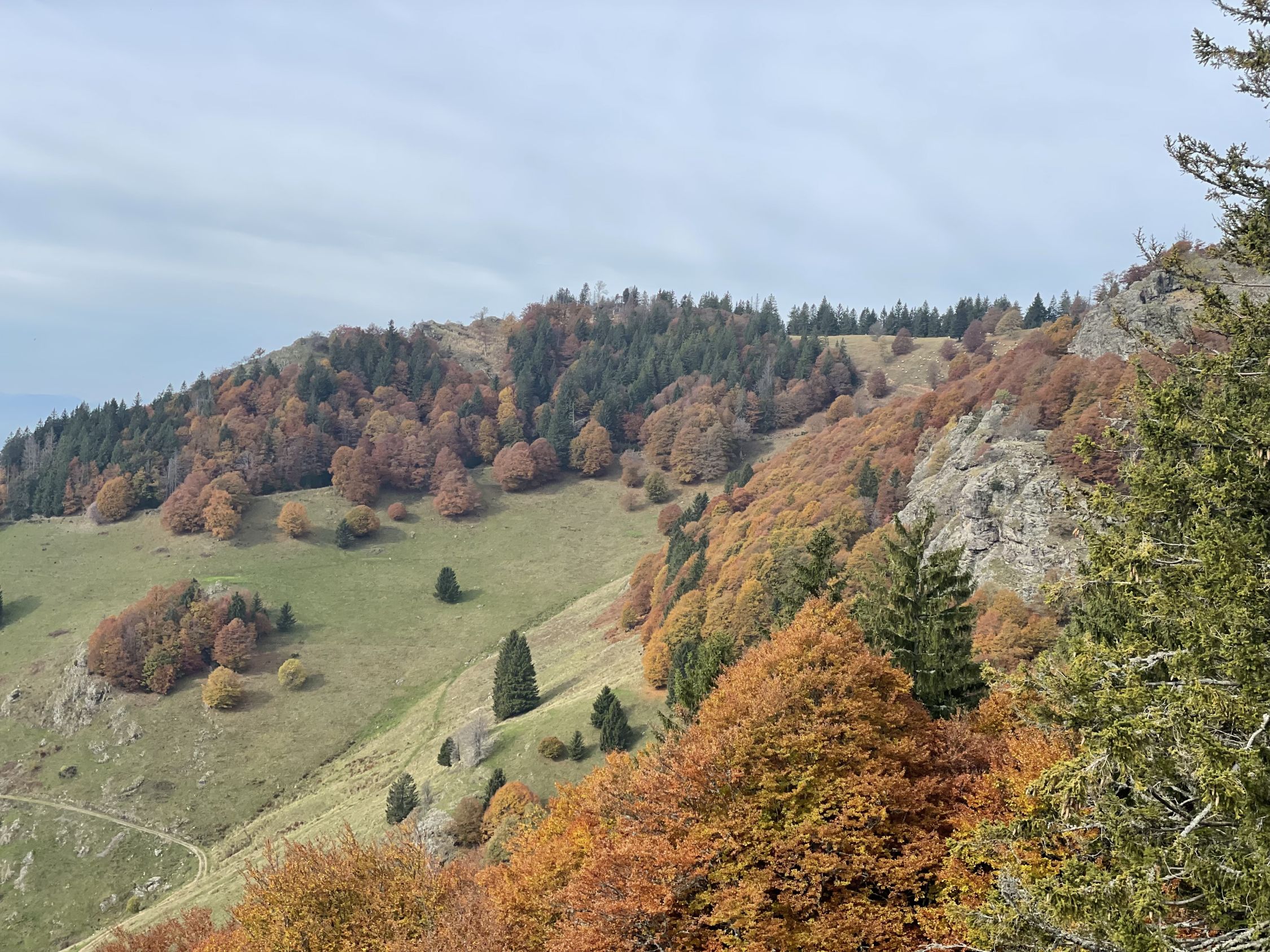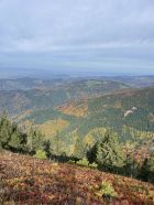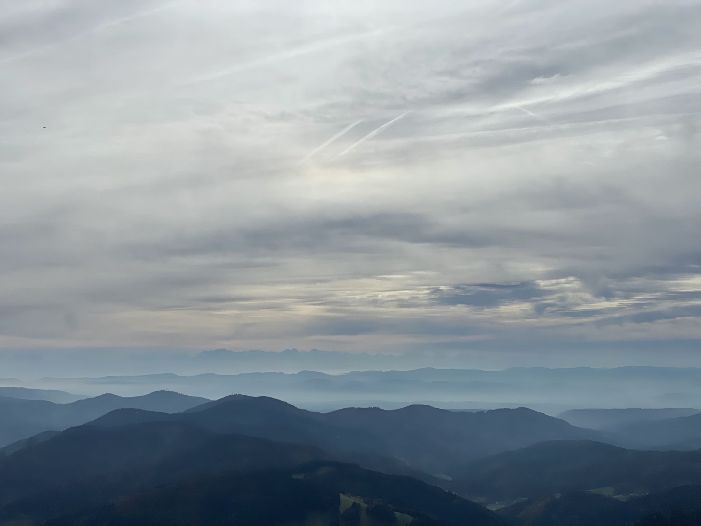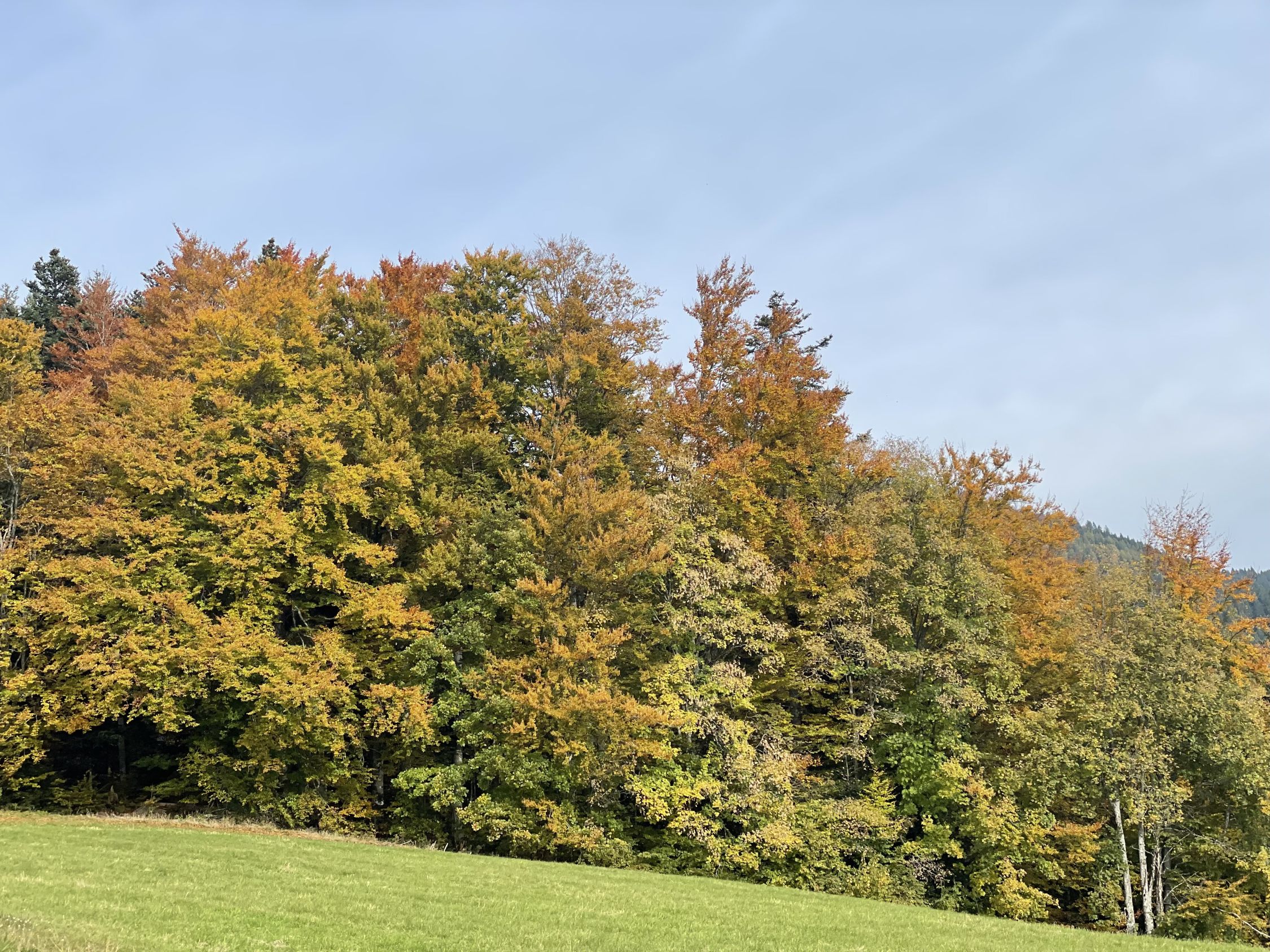 Vielleicht der letzte Tag mit den schönstmöglichen Herbstfarben! Sogar die Heidelbeerfelder Richtung Krinne waren rotorange verfärbt. Es gab auch dunstige Alpensicht. Natürlich hatte es heute relativ viele Wanderer auf der Strecke und viel Volk am Gipfel. Trotzdem unterwegs mehrheitlich ruhig. Temperaturen angenehm, 11 Grad beim Start in Hau. Oben mit Wind frisch.