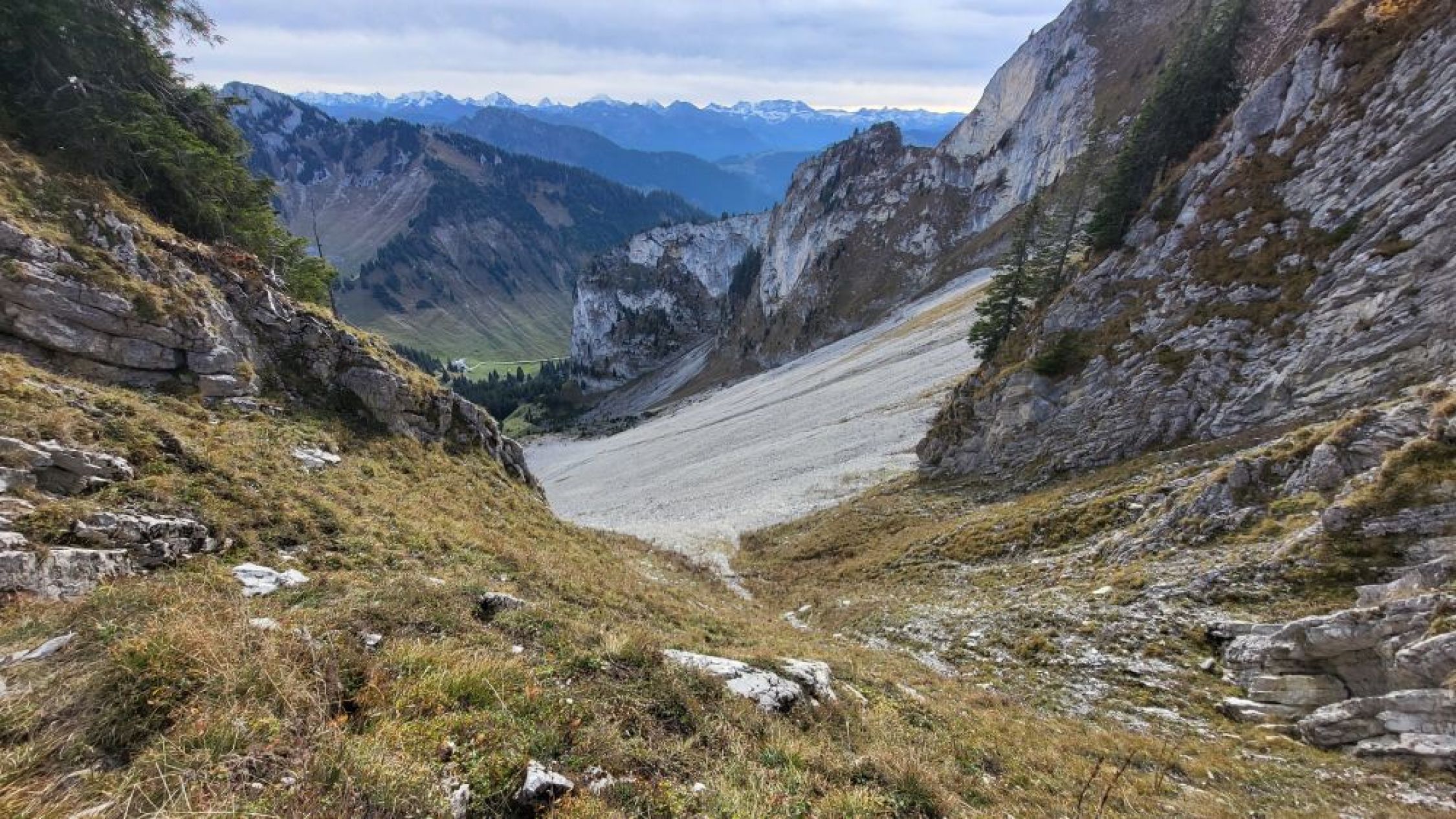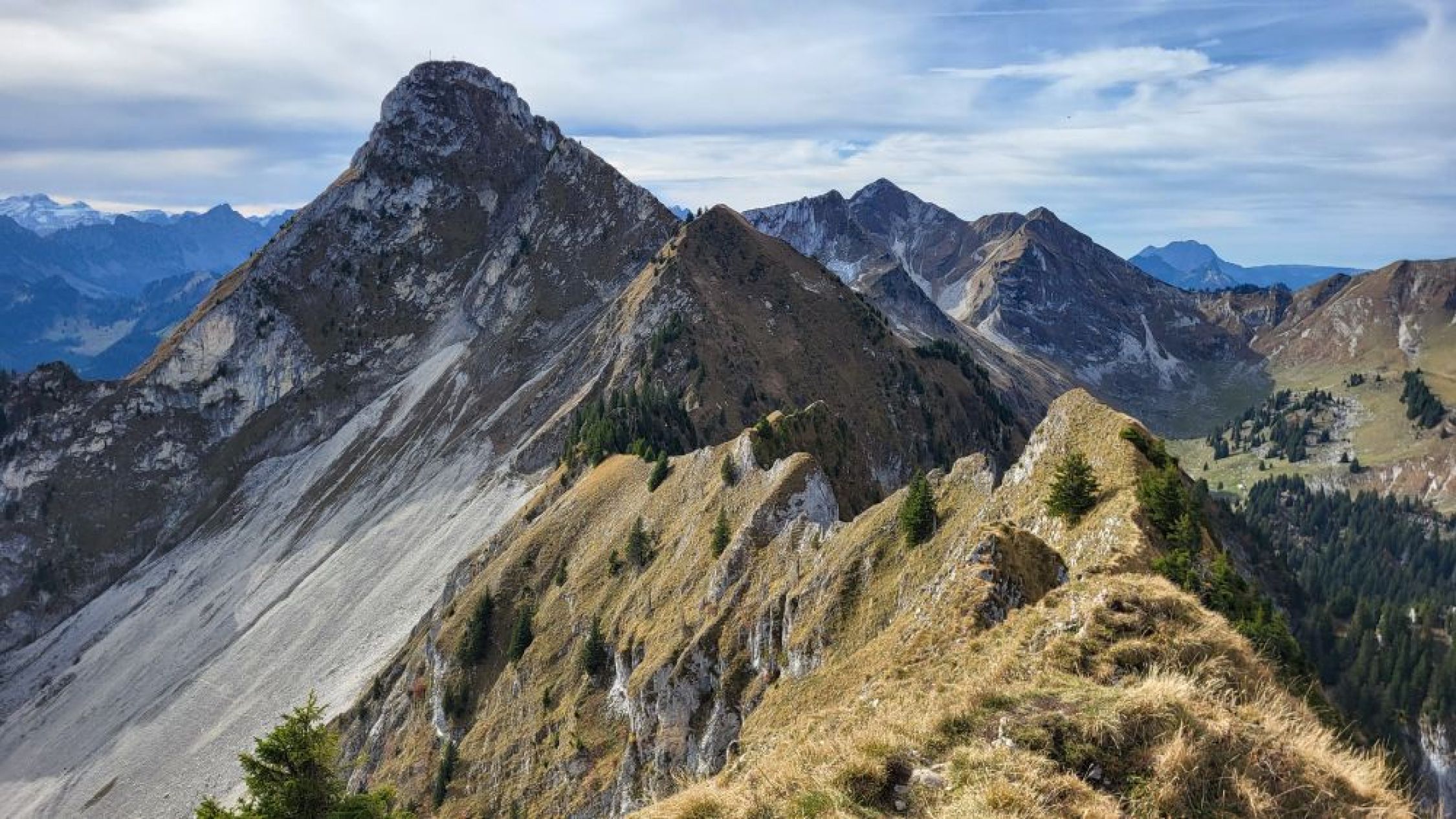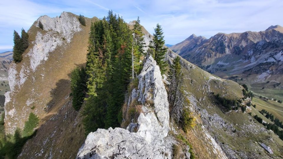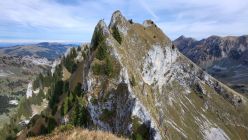 Gestartet bin ich am Schwarzsee mit dem eBike. Auf dem Euschelspass das Bike abgestellt. Dann bin ich von Osten in den tiefsten Punkt des Verbindungsgrates (Fochsenflue - Chörbelispitz) aufgestiegen. Zugang durch ein Couloir. Etwas mühsam, aber unschwierig. Dann bin ich zuerst auf den Chörbelispitz und den gleichen Weg wieder zurück in die Scharte. Danach bin ich nicht abgestiegen, sondern habe den Grat auf die Fochsenflue noch angehängt.