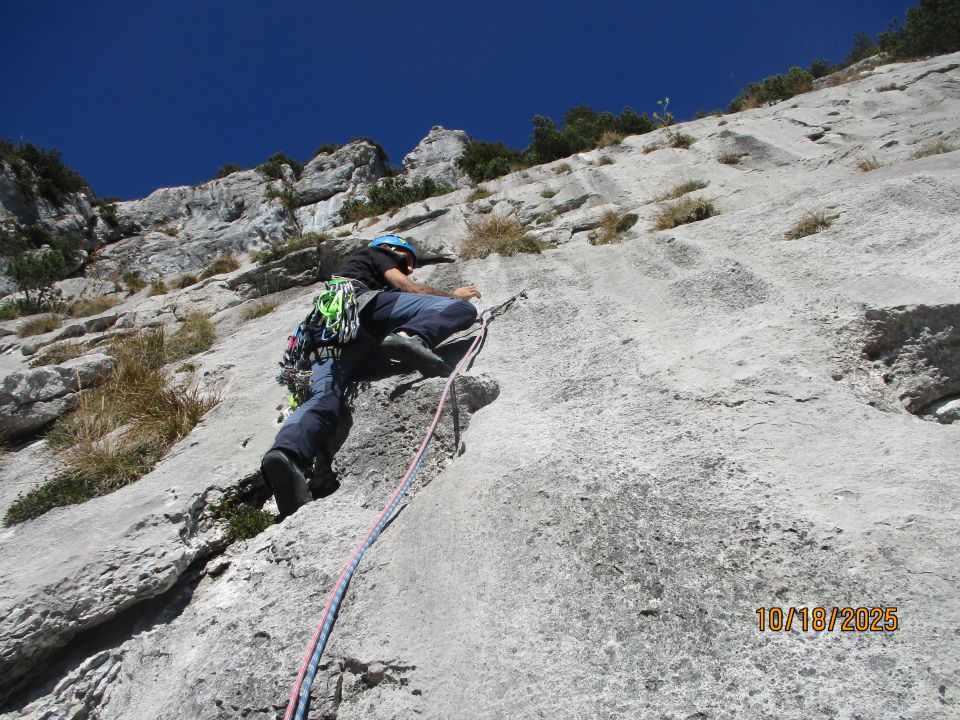 Sonntag teilweise Hochwolkenabdeckung, aber tagsüber immer noch angenehm warm und häufig auch sonnig. Beim Einstieg ca. 10.45 h erste SL noch im Schatten, Fels dann noch ziemlich kalt.