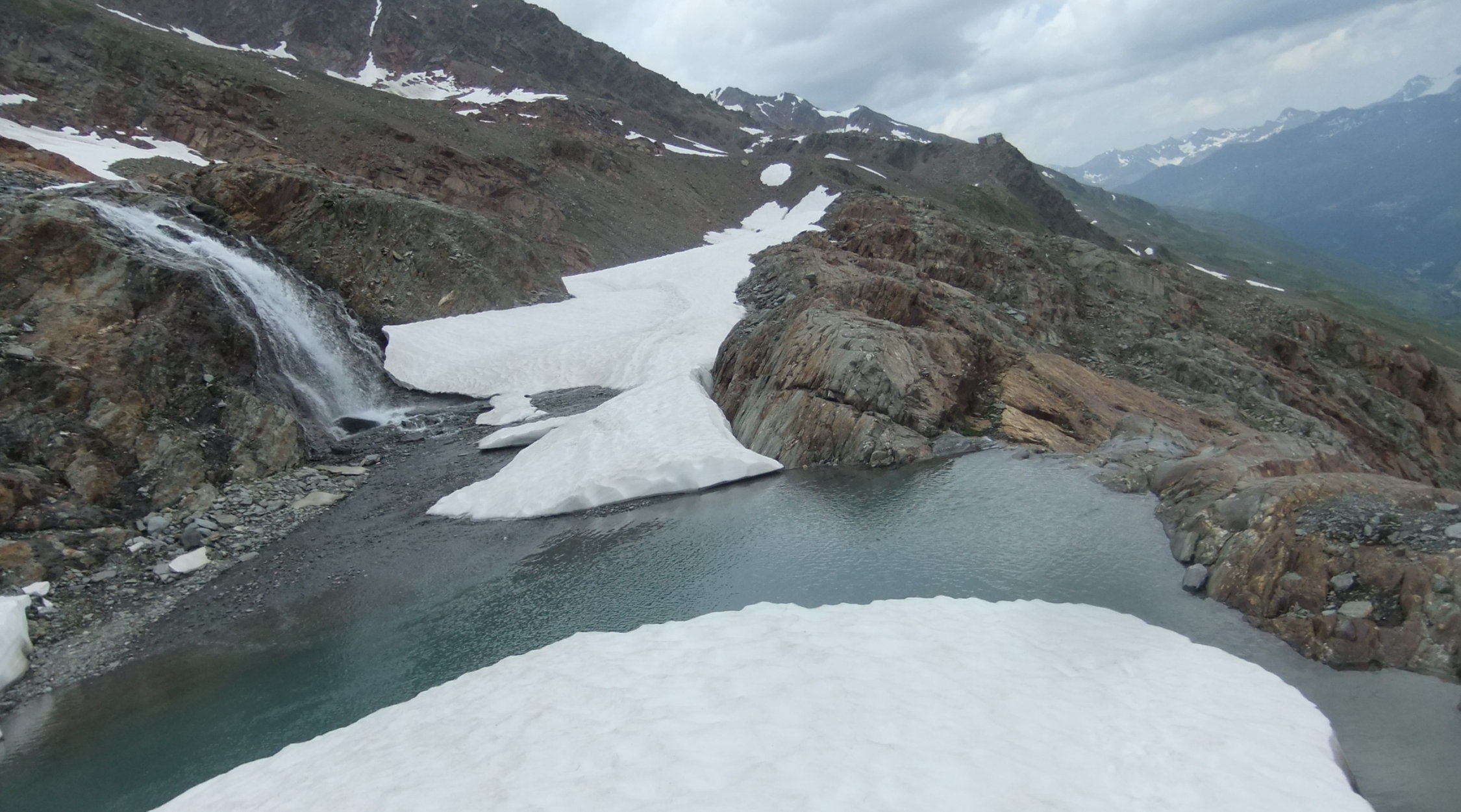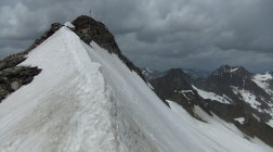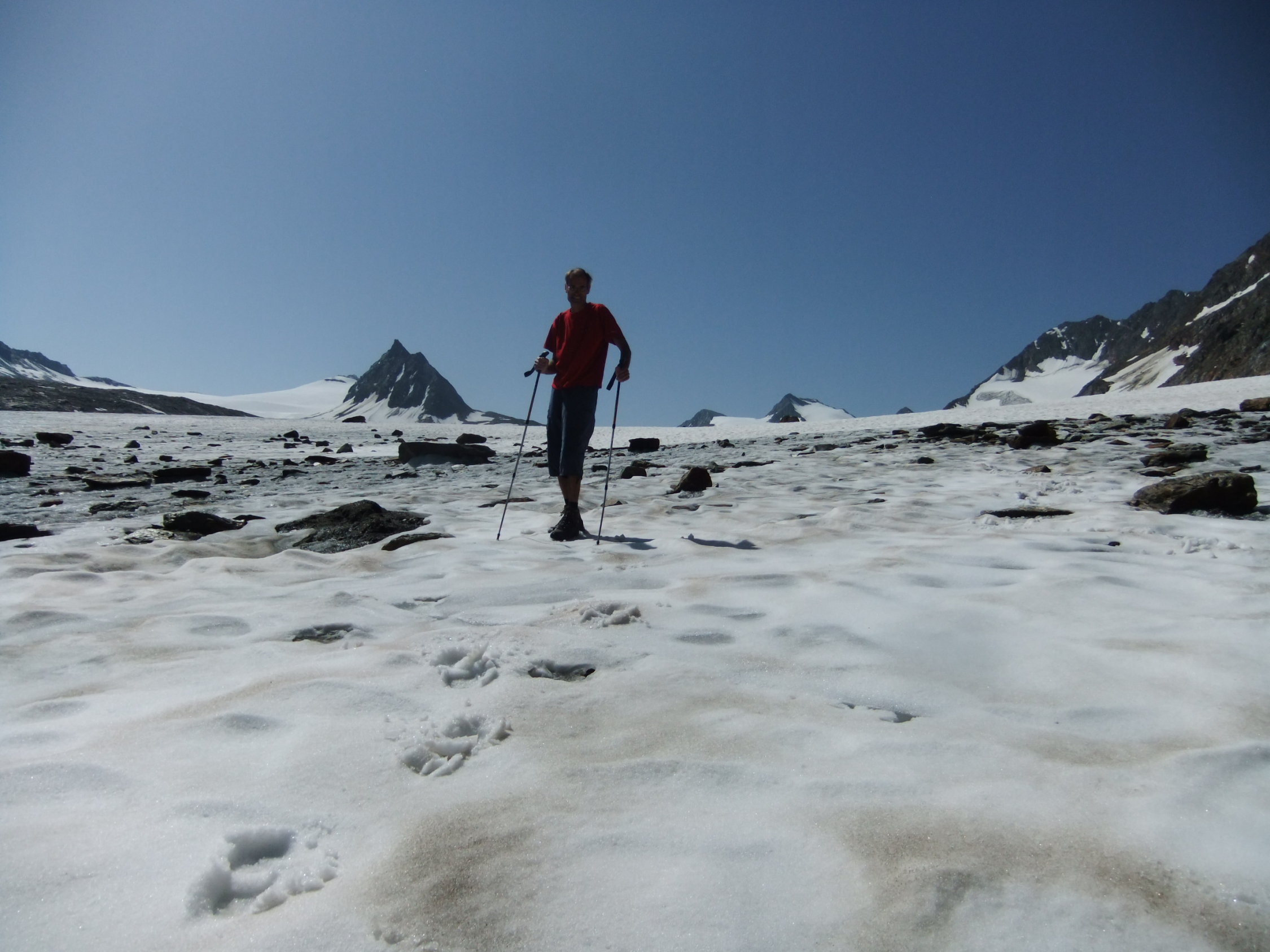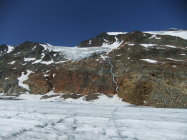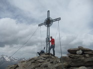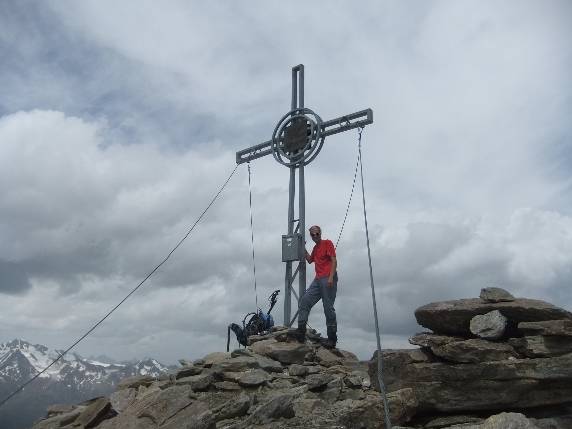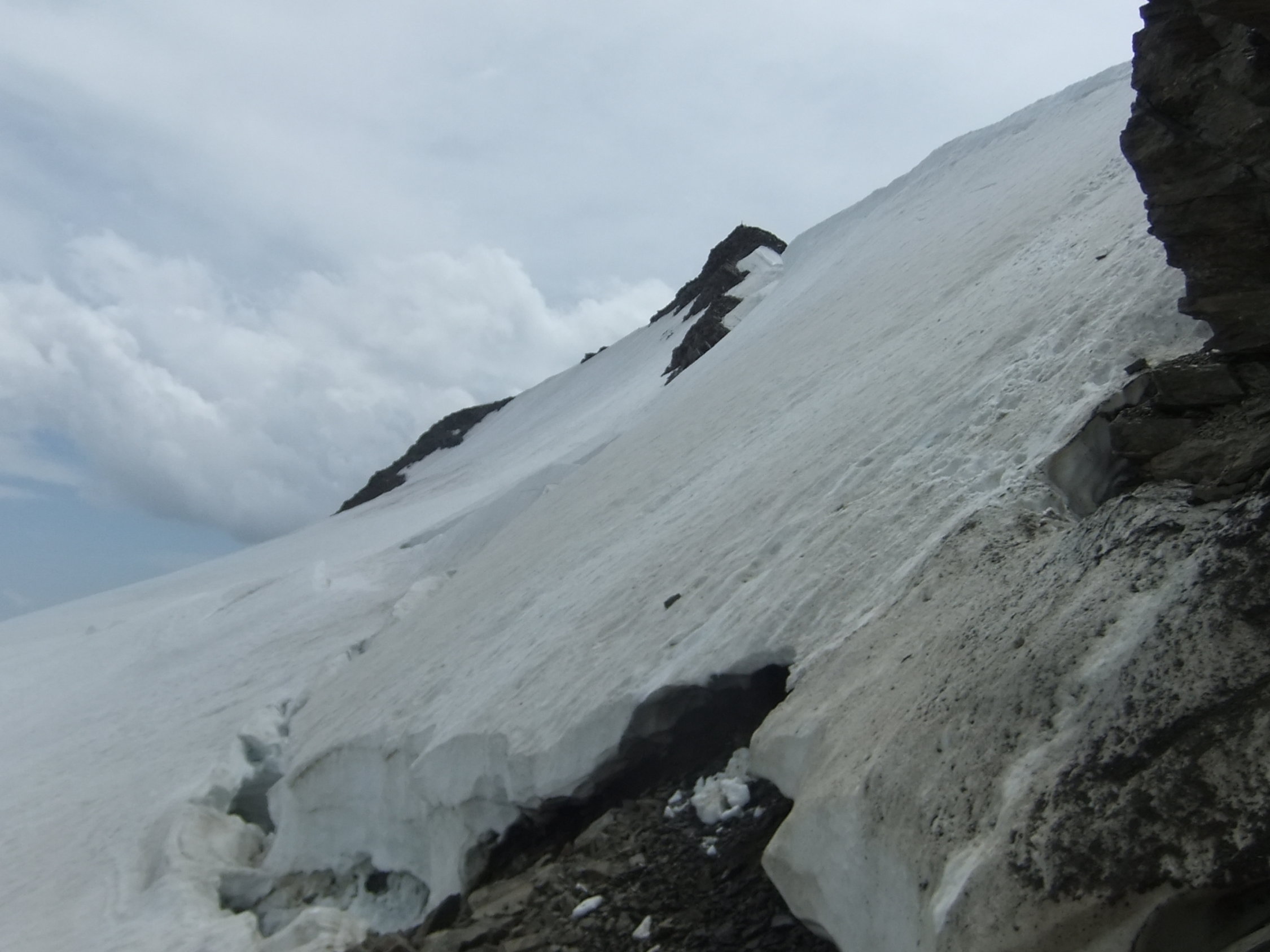 Sehr warmes Wetter auch nachts, so daß auf dem Ferner weicher Trittschnee herrschte, bis auf einige apere Stellen, so daß der Pickel nicht zum Einsatz kam. SO-Grat schneefrei. Nordgrat verwächtet, aber westseitig gut gangbar. Das Bruch- u. Schuttgelände lud mich nicht gerade ein, über den Grat zum Firmisanjoch zu turnen, zumal die Zeit auch fortgeschritten war. Darum stieg ich am Ende verfirnten Nordgrats über das oben steile Schneefeld ab zu den Ferner-Felsbänken.