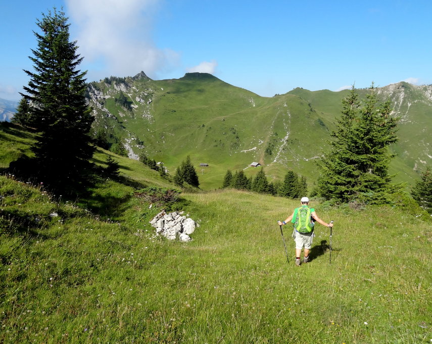 Nach Gewittern wird der Weg über den Cheibehore Rücken rutschig. (Gras und Wurzeln).