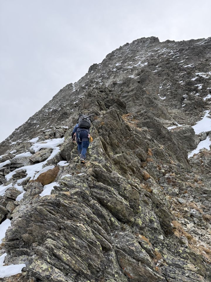 Der Aufstieg ging unerwartet gut, da es auf dem Nordwest Grat nur wenig bis kein Schnee hatte.