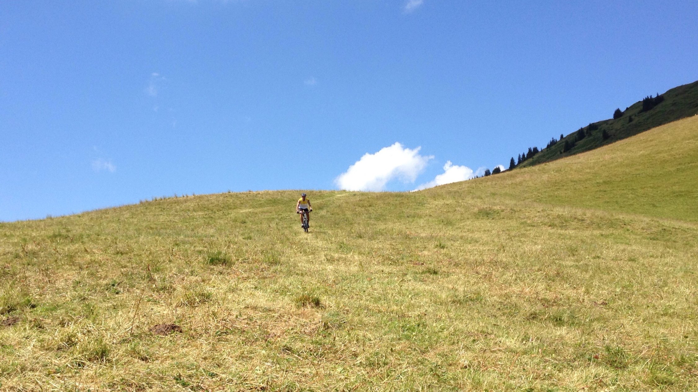 Unterwegs mit der ganzen Familie. Ab Hüslibärg mit Joël auf den Gipfel des Hundsrügg mit dem Bike.