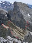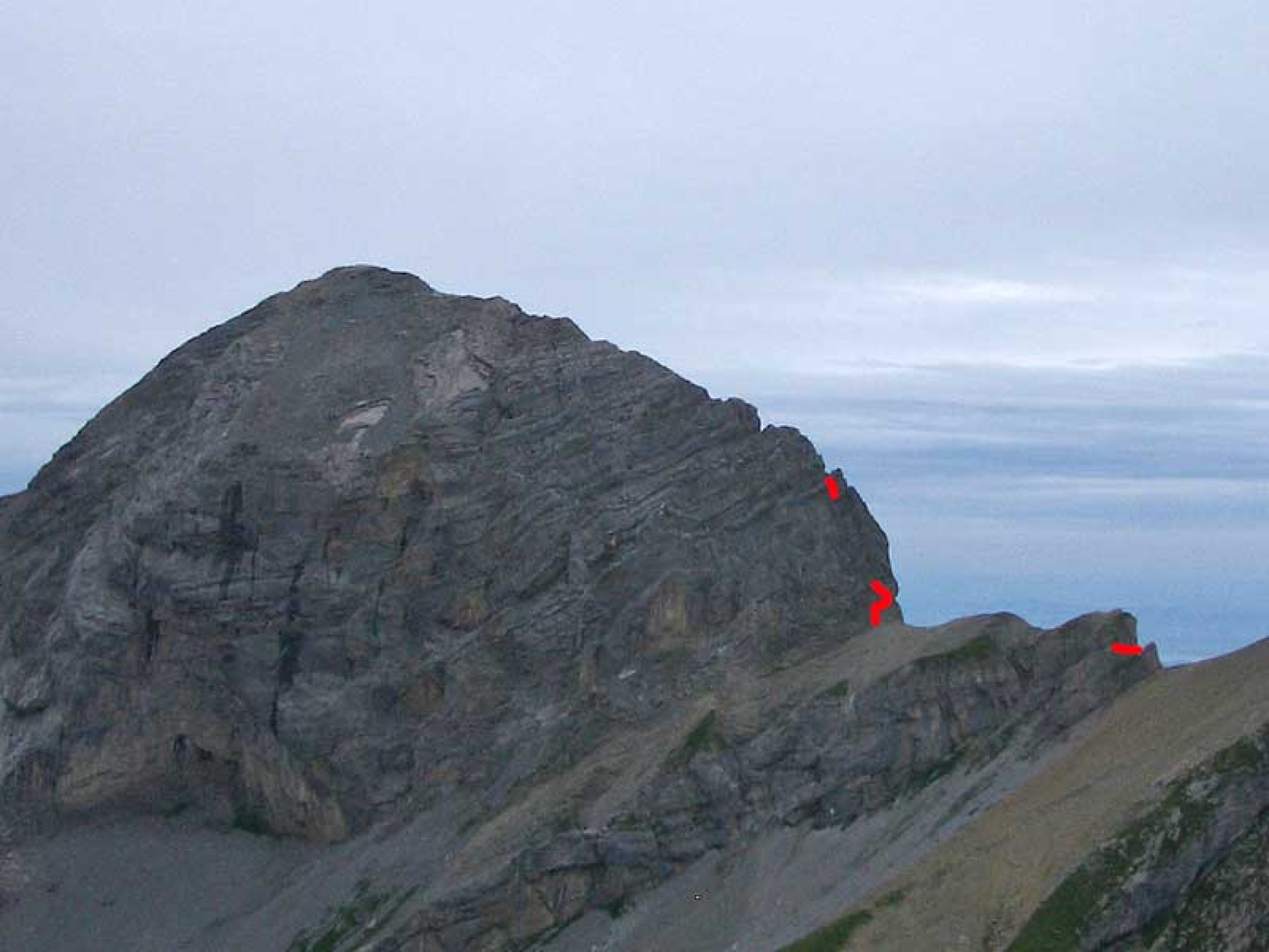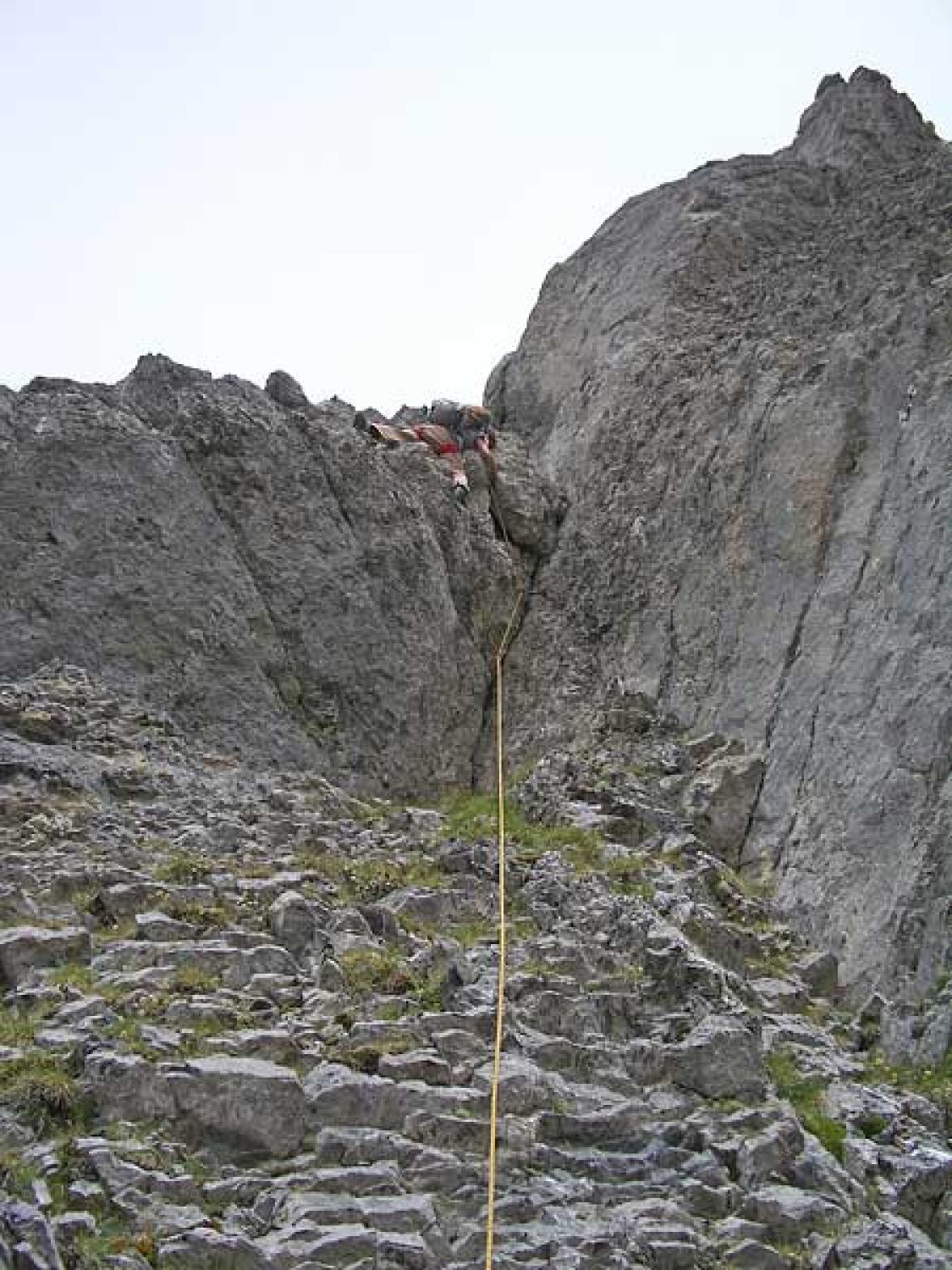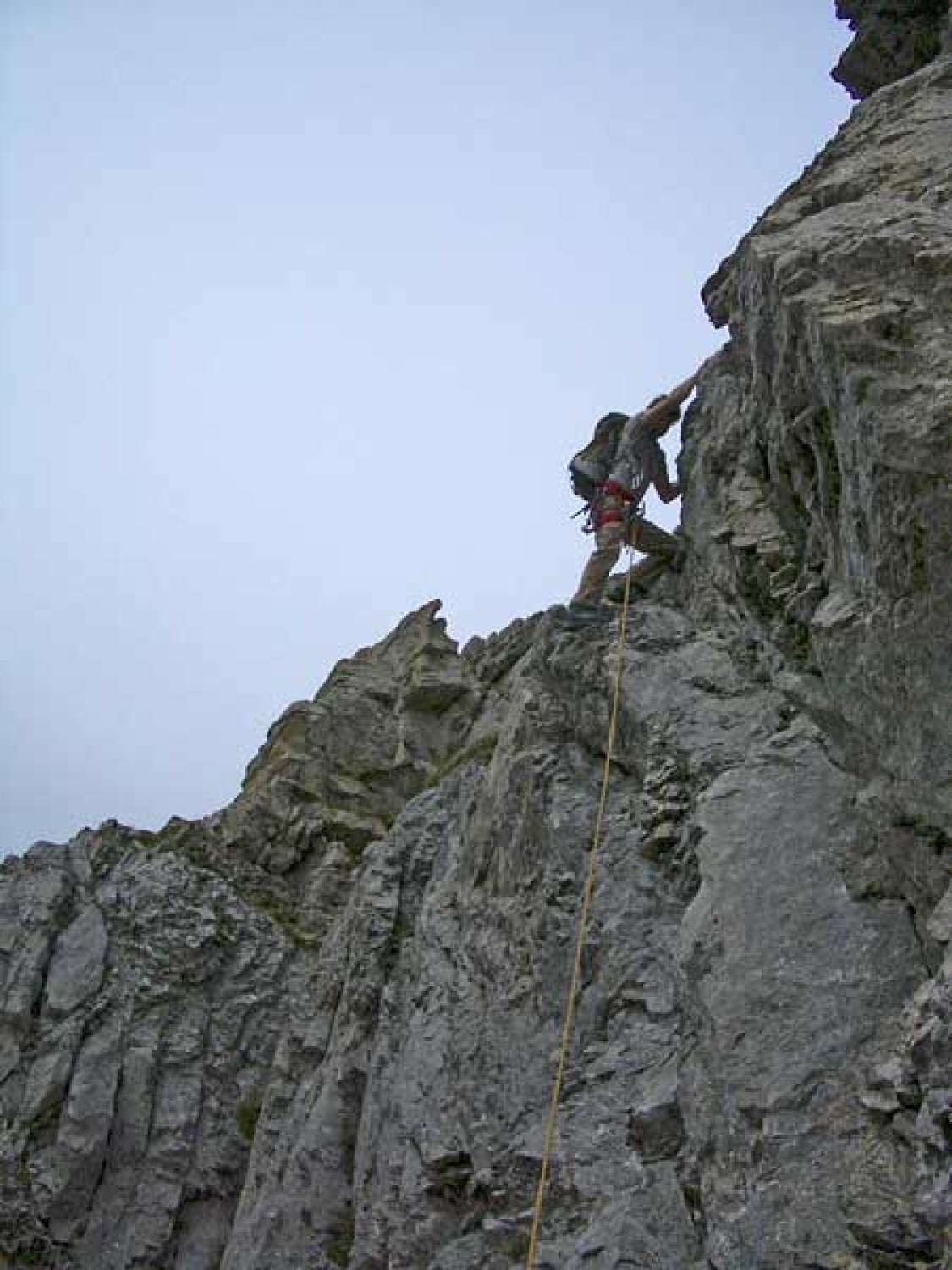 die verhältnisse sind nach der vergangenen langen trockenperiode ideal: die schrofen sind sehr trocken und damit unproblematisch zu begehen. für die kletterei ist es sicherlich von vorteil, wenn man deutlich reserven nach oben verfügt, da sich ansonsten die benötigte zeit infolge sicherungsaufwand schnell verdoppeln wird. auch muss man sich zwingend mit kletterei in brüchigem fels auskennen, da der fels doch über weite strecken nicht allzu zuverlässig ist. vor allem am rotsandnollen und stellenweise auch am barglen lässt einem steile kletterei an heiklem fels hie und da das fürchten lernen.