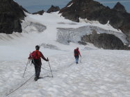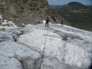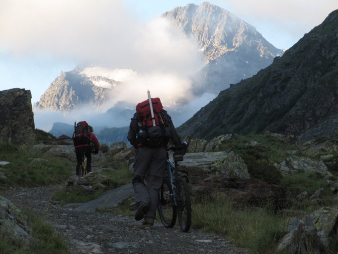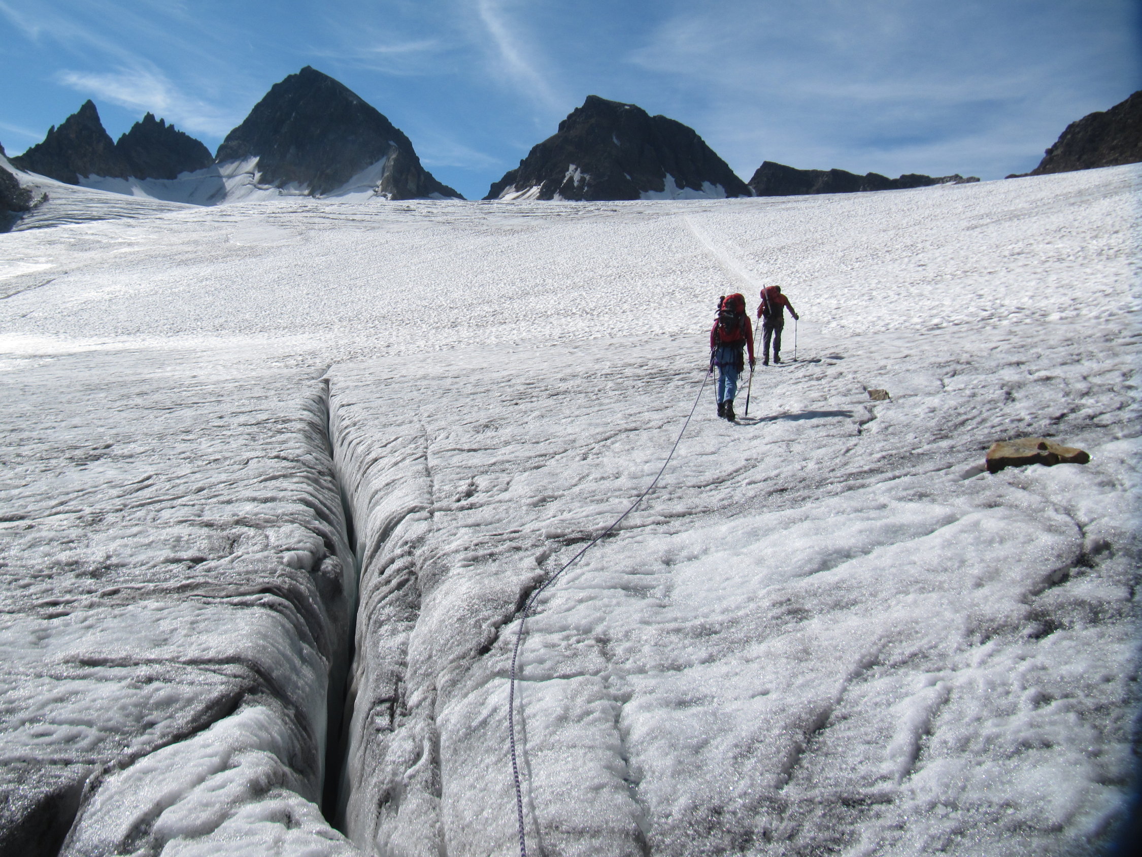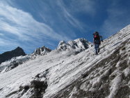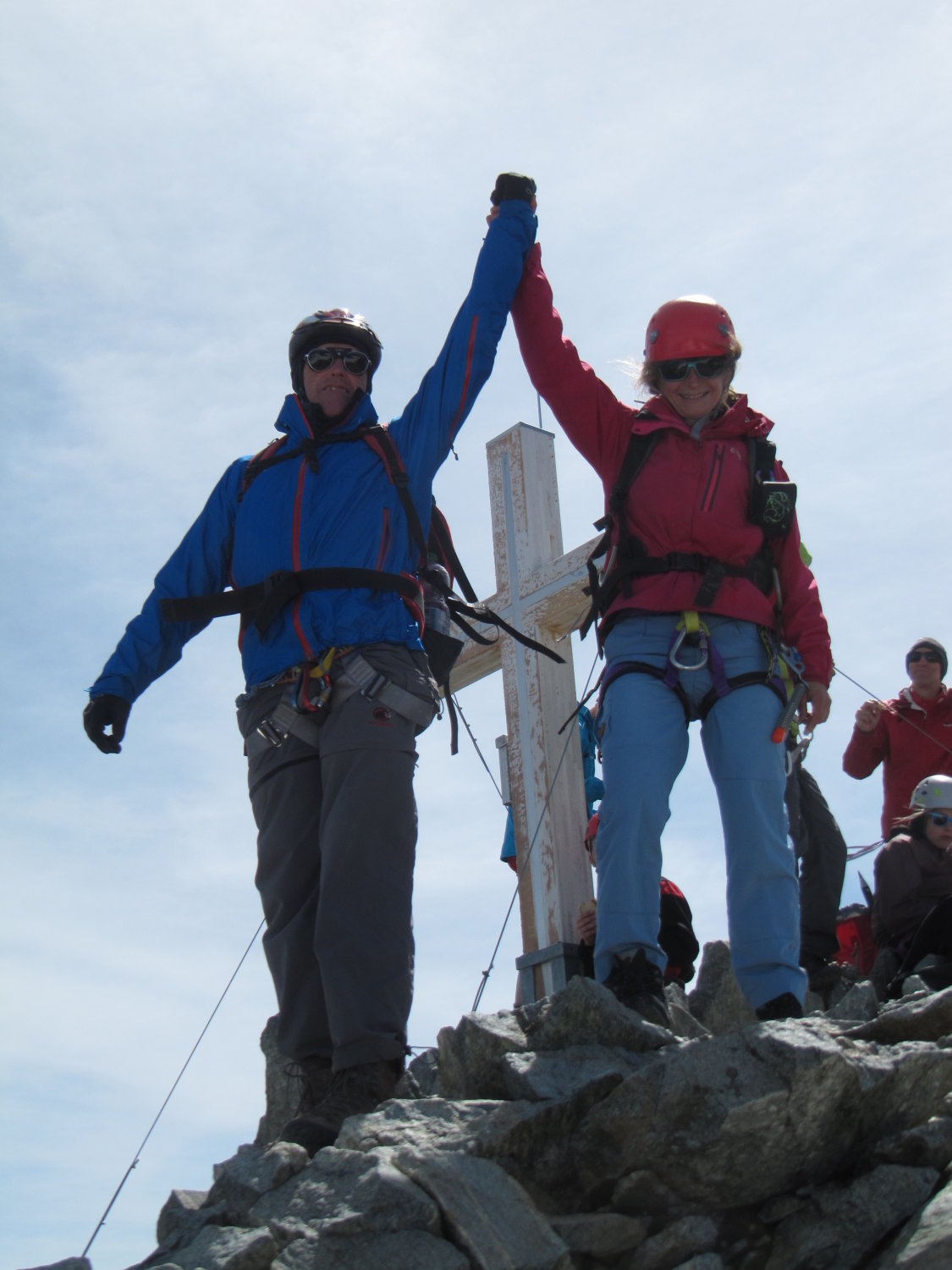 trockene Verhältnisse bis NW-Grat. Hier war stellenweise der Fels noch mit dünner Eisschicht überzogen