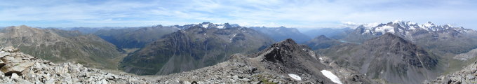 Abstieg über Piz dals Lejs und dessen SE-Grat zur Fuorcla Minor. Landschaftlich reizvoller als die Aufstiegsroute, Schwierigkeit T4.