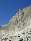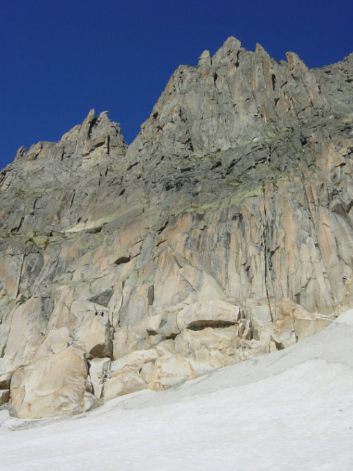 Um 8Uhr am Tätsch los, so konnten wir schön um 10Uhr einsteigen, denn dann kommt erst die Sonne in die Route. Es hat alles, von Platten über Risse, Piaz und Verschneidungen. Auch steile und schön ausgesetzte Passagen. Die Route ist gut und überlegt abgesichert, aber nicht zu üppig. Man kann zwischendurch immer wieder einmal einen Friend einsetzen. Nach dem Ende der 7 eingerichteten Seillängen abgeseilt und noch zu Fuss über die Winterlücke zum Gipfel hochgestiegen. Sehr schöne empfehlenswerte Kletterroute.