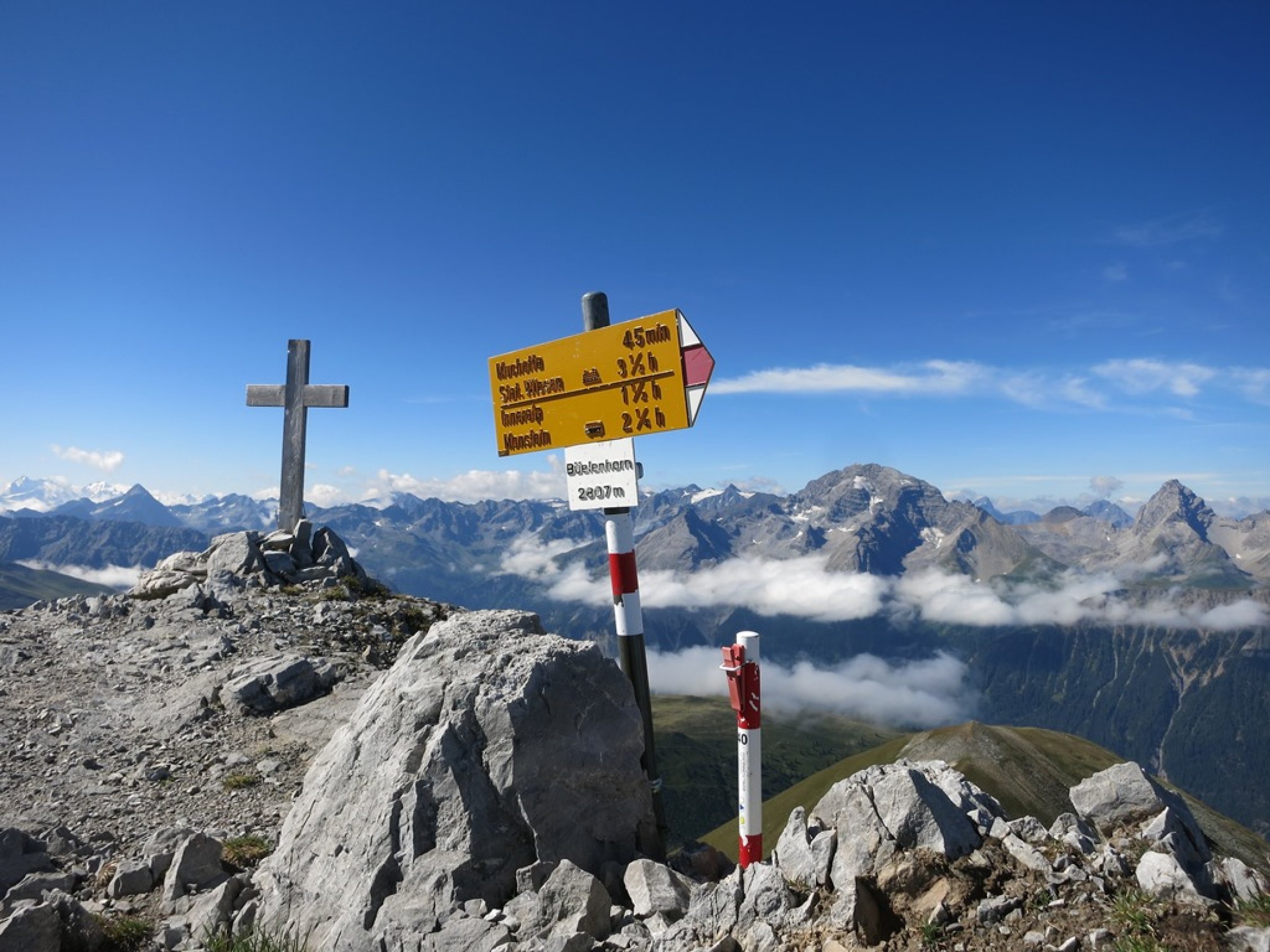 Auf dem Wegweiser am Büelenhorn steht: „Muchetta 45 Min.“ Diese Angabe ist schon recht sportlich…