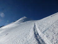 gut. Unten die ersten 100 HM blank. Festijoch Schneefrei. Nach Festijoch Oswärts in die Flanke gequert, dann in den Gletscherkessel. Über die Spalten noch gut. Nordlanke sehr gut. Die letzten 150hm zum Gipfel über die Westseite, 50 hm auf Frontalzacken, Abstieg vom Gipfel Ostwärts. Geht sehr gut.