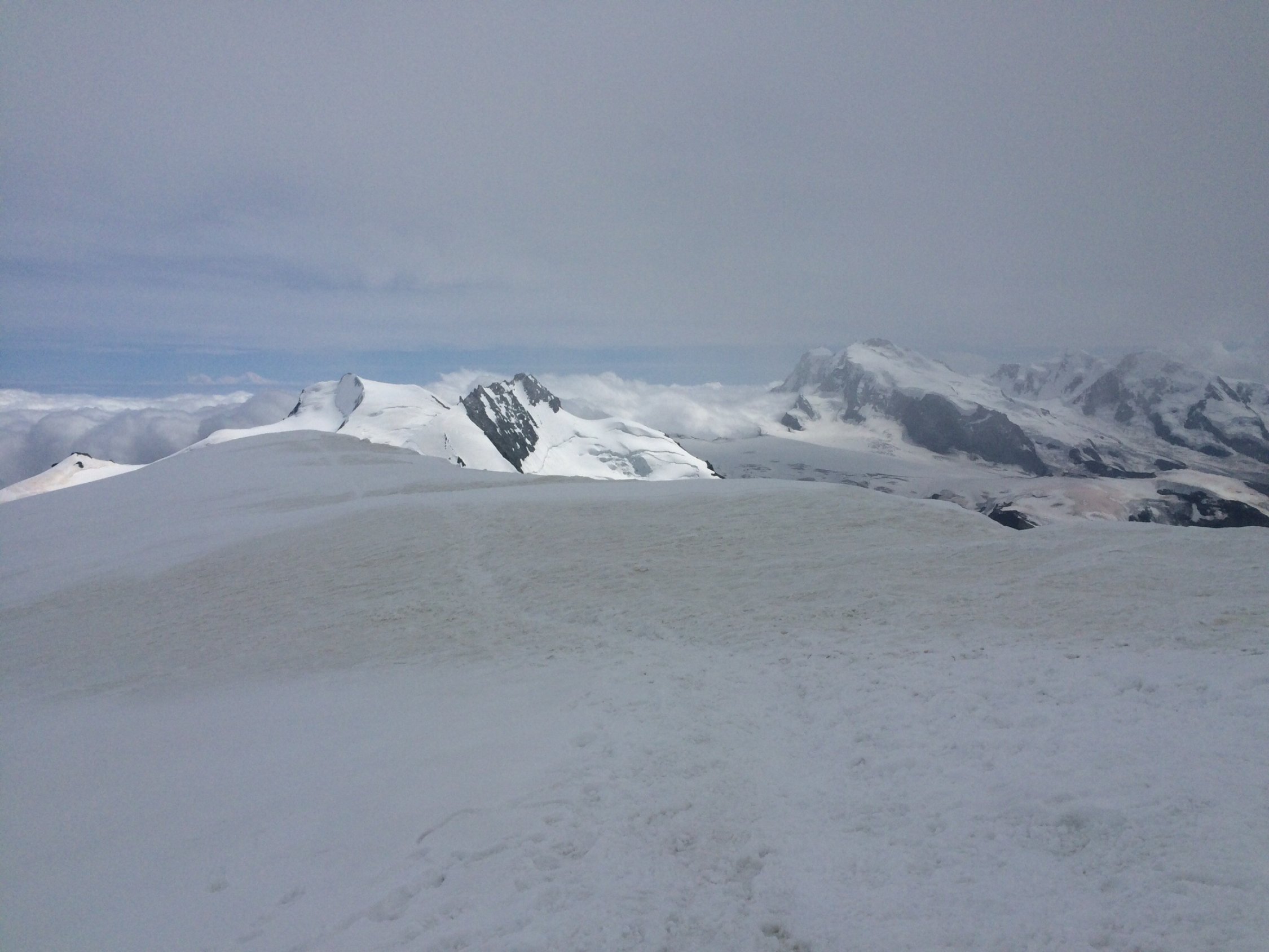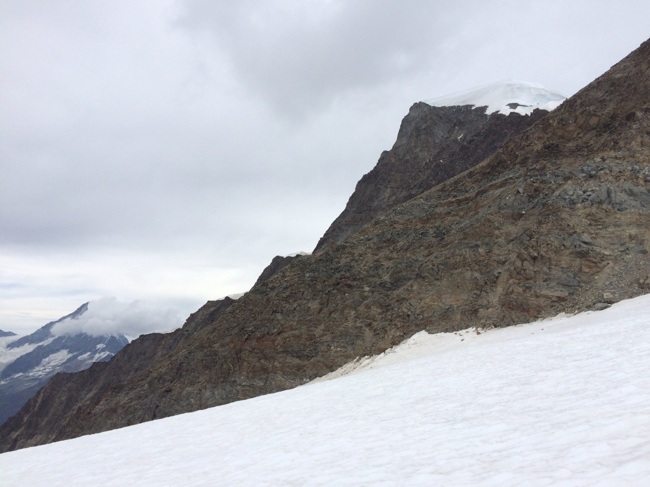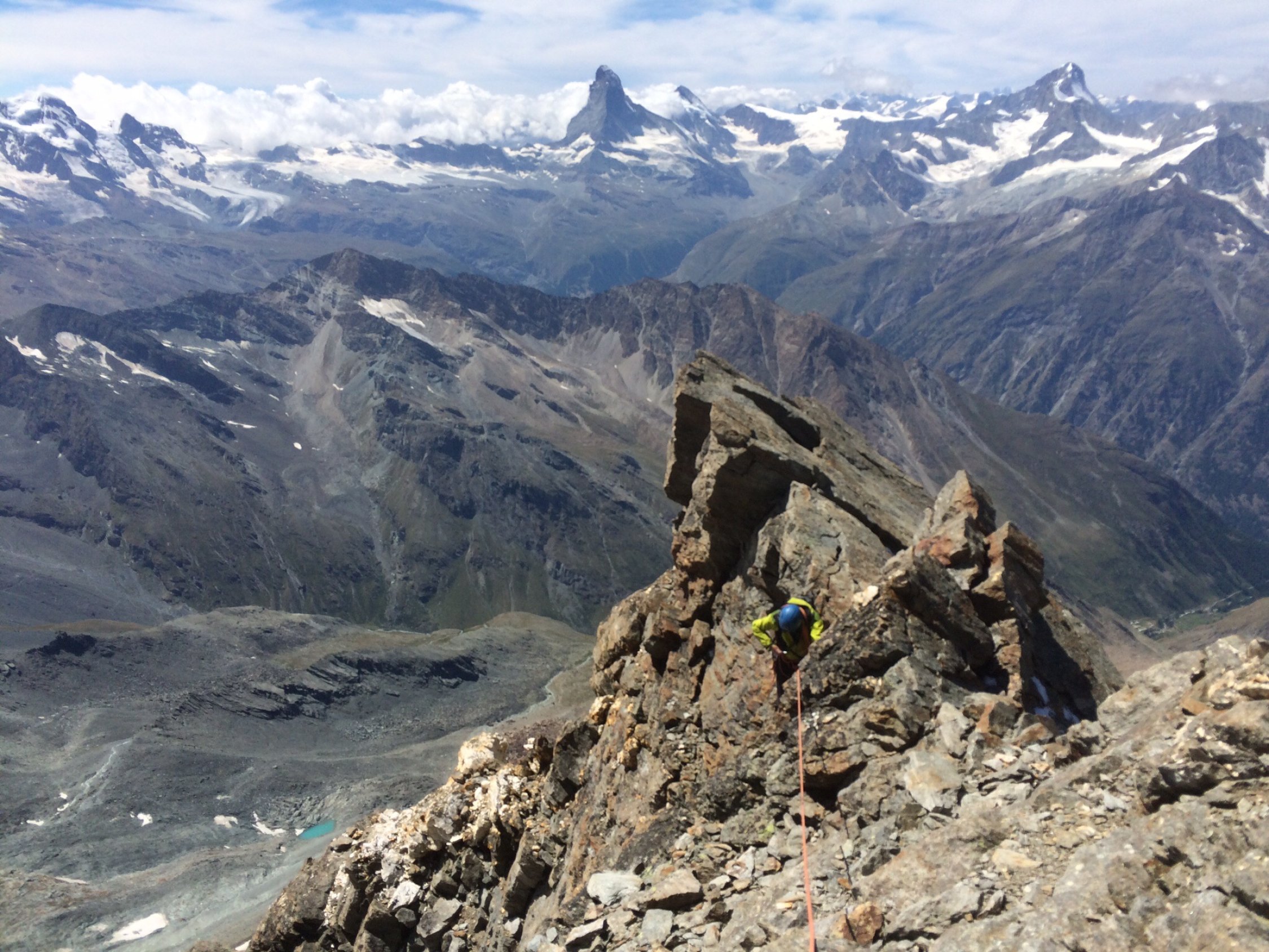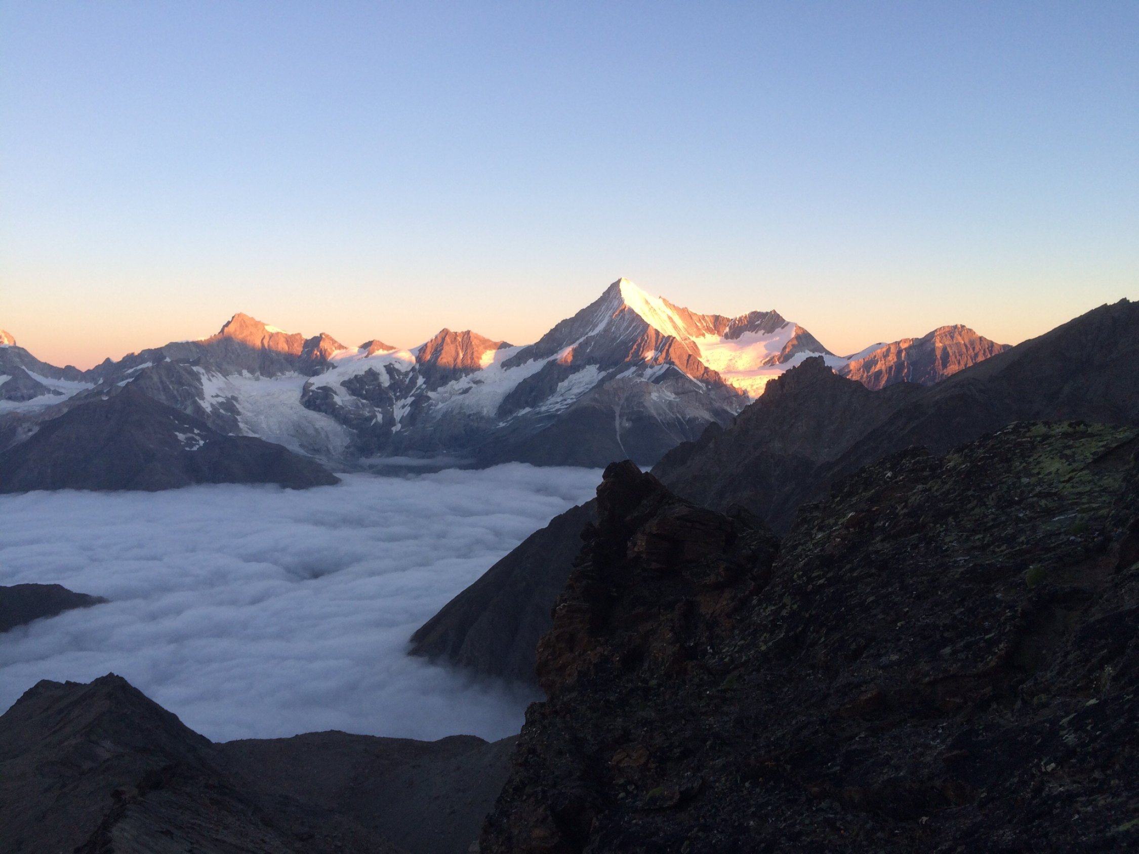 Trotz abloluter Hochsaison und guter Wetterprognose Täschhütte halb leer und der Rotgrat nur surch zwei Seilschaften begangen