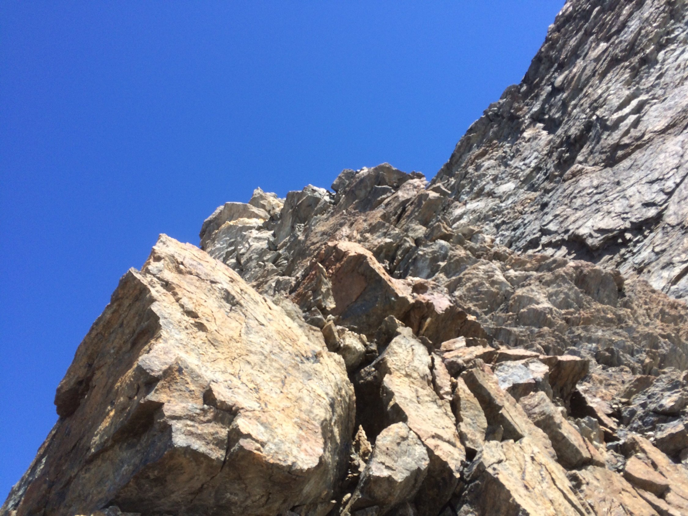 Ab und zu Steinschlag in den Couloirs, deshalb nie in die Couloirs ausweichen