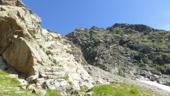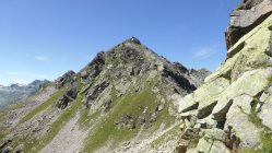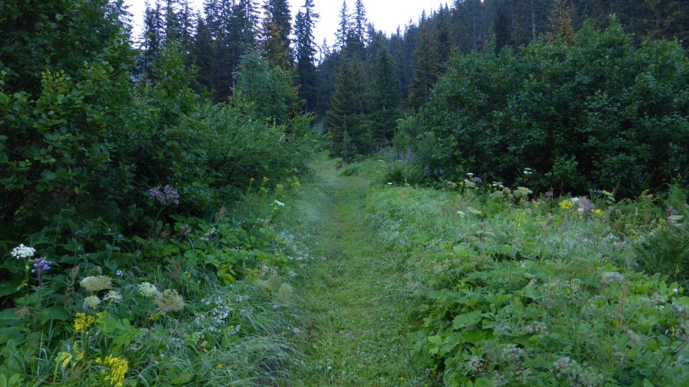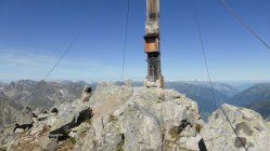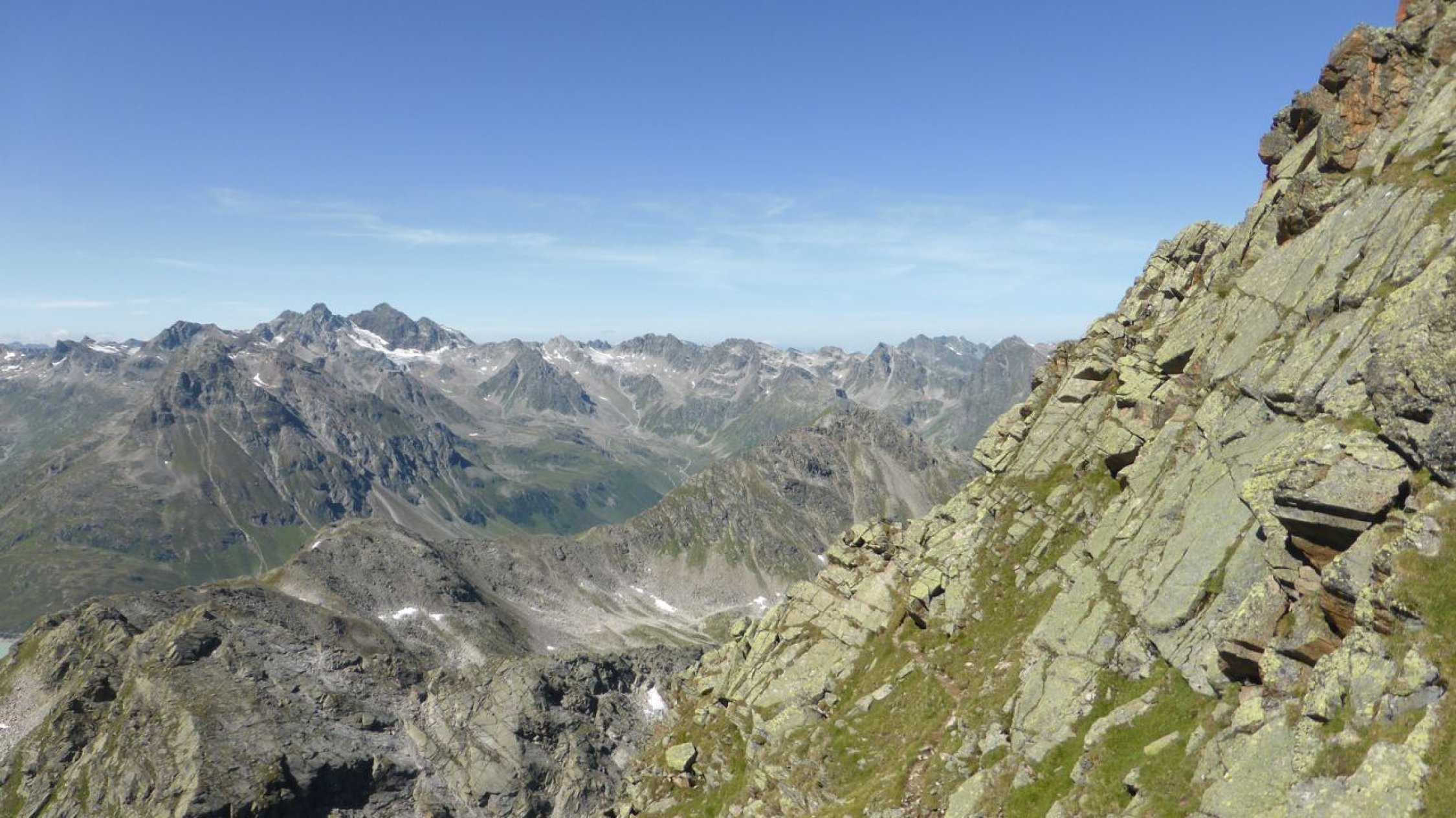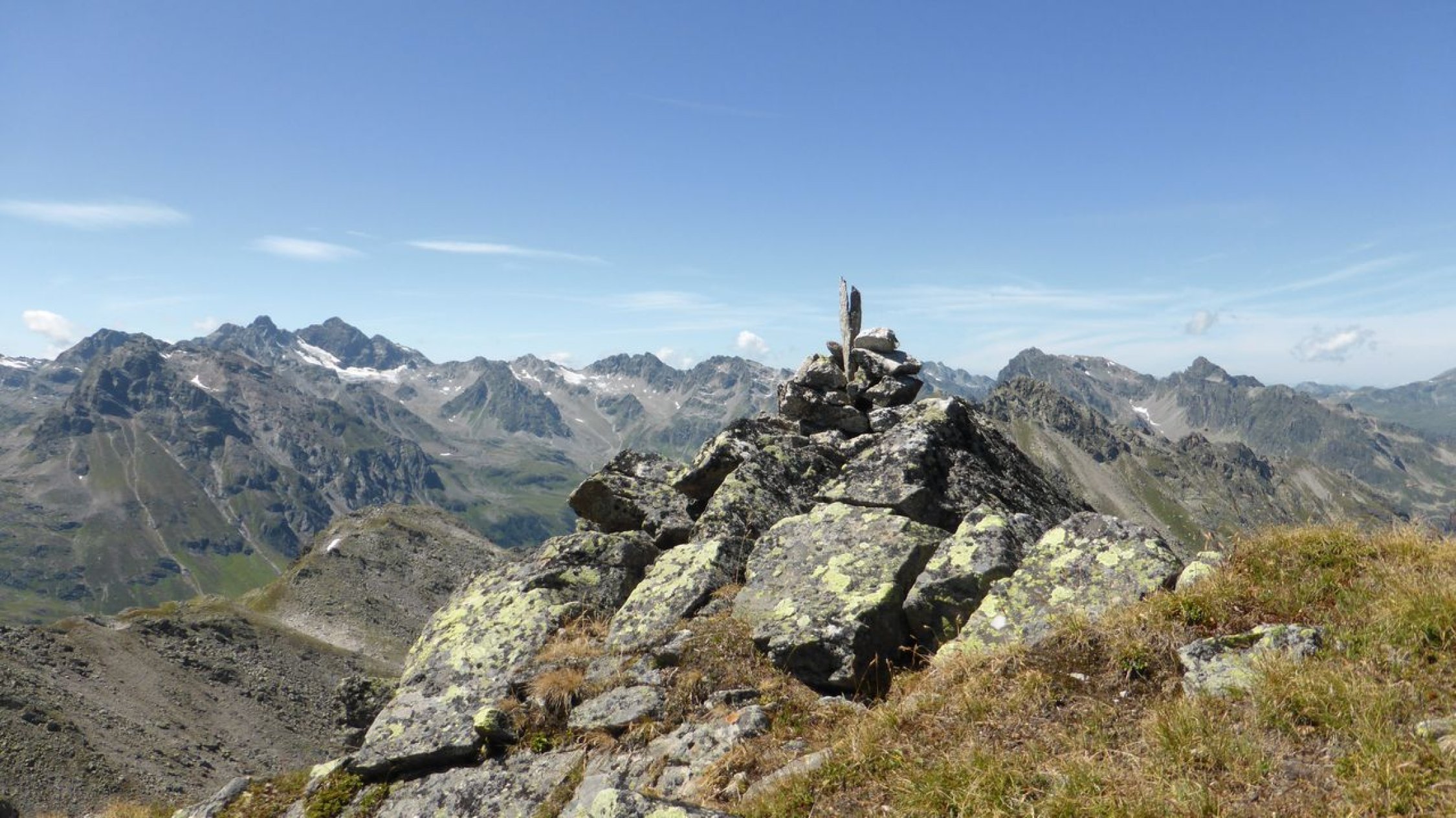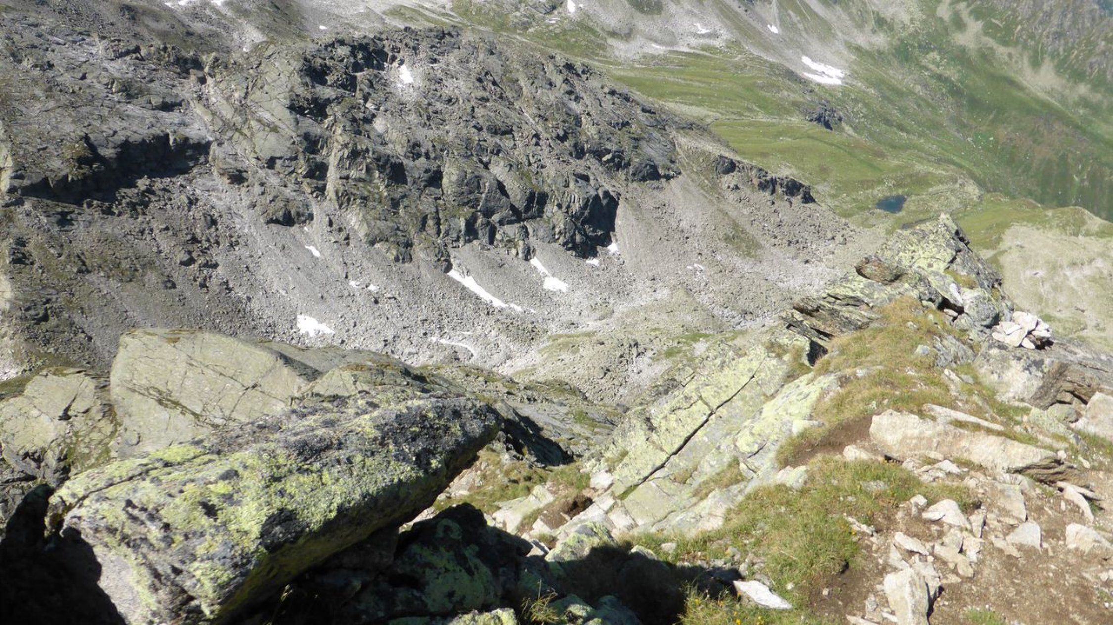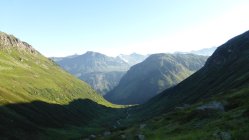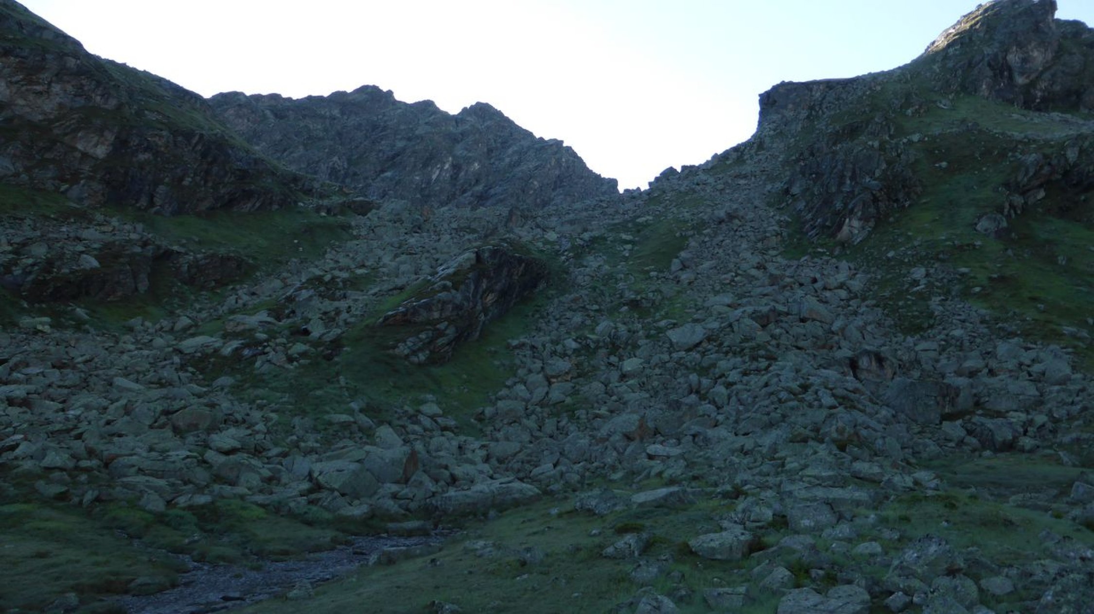 Ich ging bei bestem Wetter sehr früh los in den schattigen Anstieg zum Übergang zw. Vallüla und Kl. Vallüla. Im oberen Abschnitt bekam ich recht klamme Finger. Der quasi weglose Marsch durch das Untere Vallülatal war eine mentale Angelegenheit. Büsche und Gras waren tw. kniehoch und vom vergangenen Regen und der kühlen Nacht war alles waschelnass. Nach dem namenlosen See musste ein weites Blockfeld überquert werden. Die nassen Flechten gaben einem das Gefühl auf Schmierseife zu gehen. Ein Ausrutscher kann da schnell schlimme Folgen haben. Bis zum Normalweg auf die Vallüla ist man sehr einsam unterwegs.