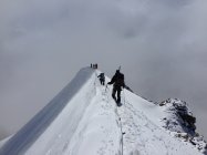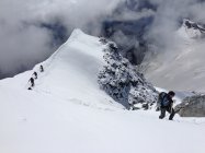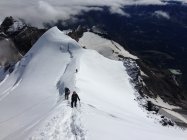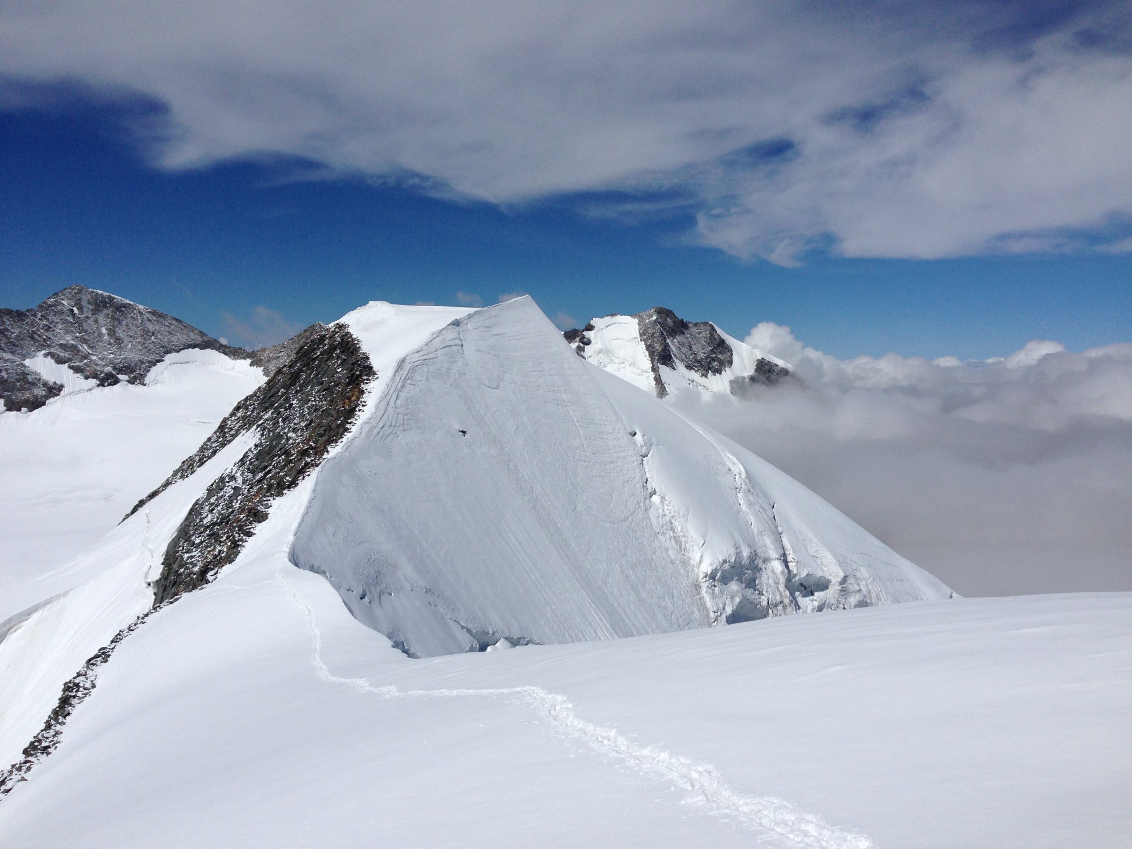 Insgesamt derzeit noch gute Verhältnisse auf dem Normalweg. Die Spaltengefahr sollte bei dieser Tour nicht unterschätzt werden. Teilweise sind die Schneebrücken bereits sehr dünn und die Wegführung verändert sich im Bruch ständig. Am Samstag hat es bis ca 3500m geregnet. Oberhalb gab es Neuschnee - je nach Exposition und Höhenlage in etwa bis 15cm. Der Neuschnee ist aufgrund der Sonneneinstrahlung und Temperatur sehr schwer und naß geworden. In Steilhängen gab es einige kleinere Naßschneerutsche. Der Bergschrund vor dem Sattel stellt aktuell kein Problem dar und lässt sich sehr einfach bewältigen. Die Flanke unterhalb des Piz Cambrena sollte zügig gequert werden, hier gibt es regelmäßig Steinschlag.
