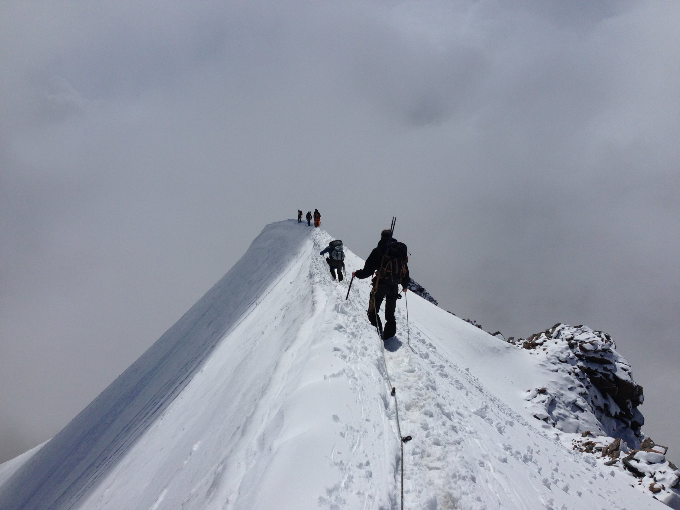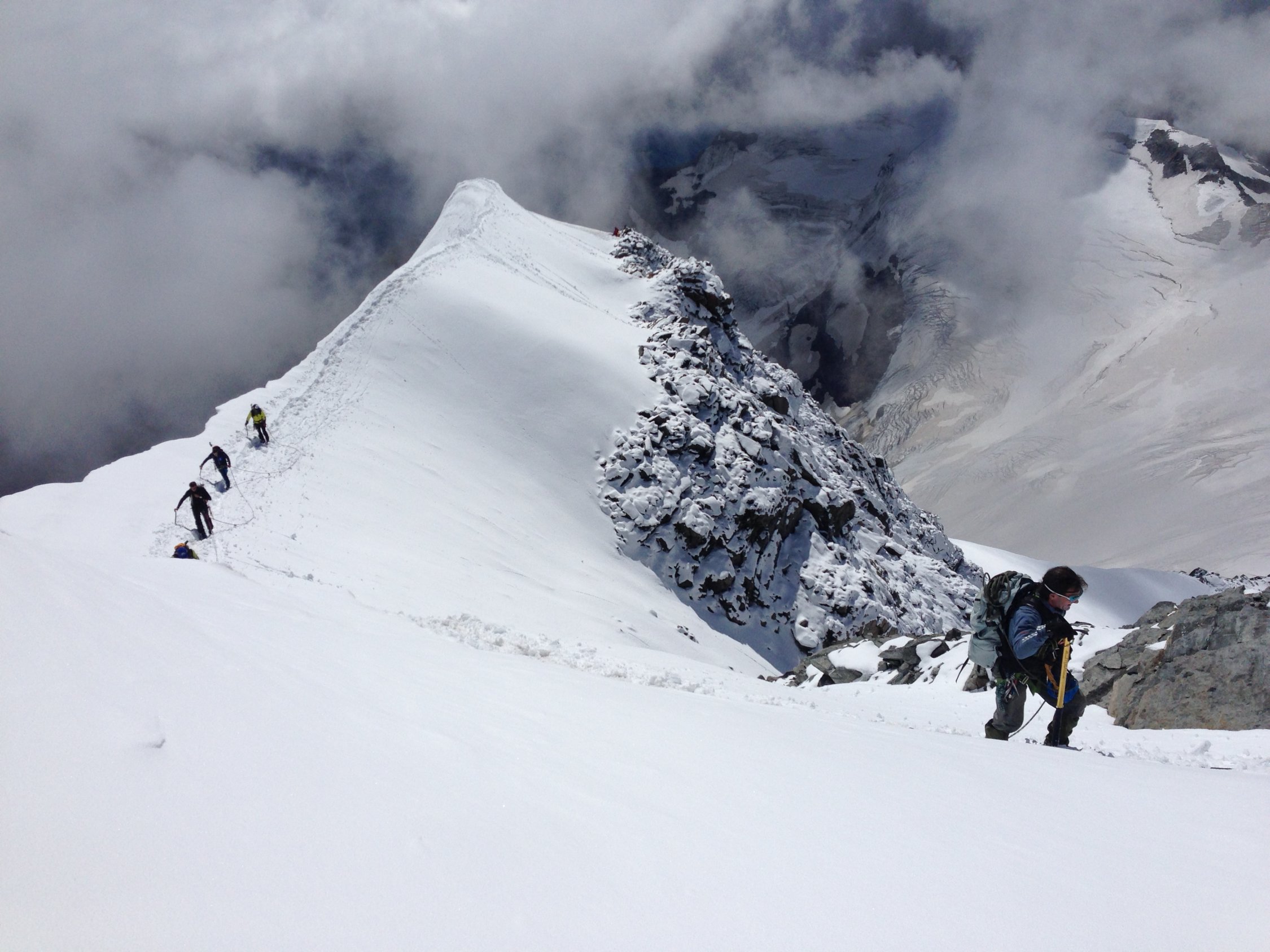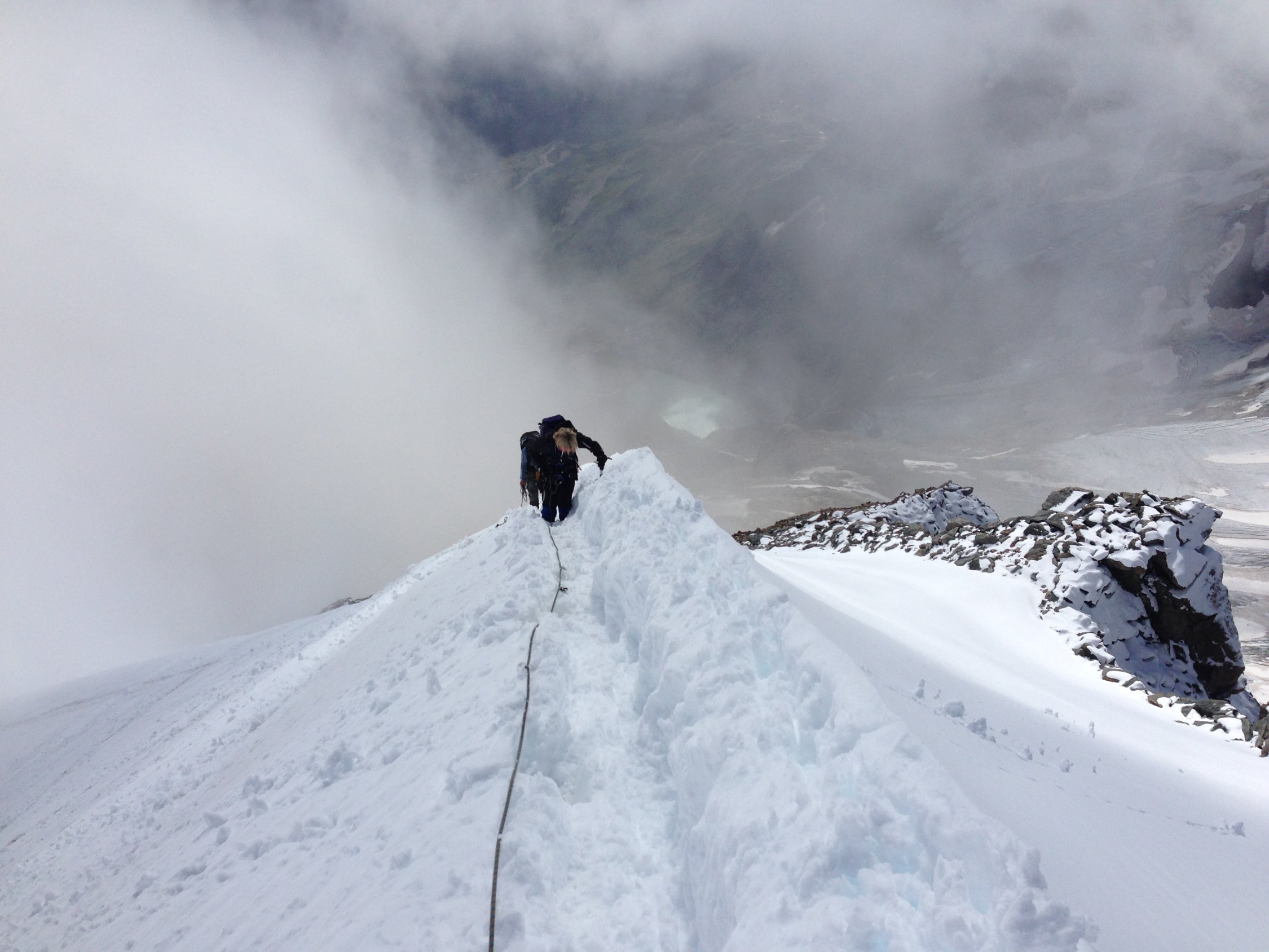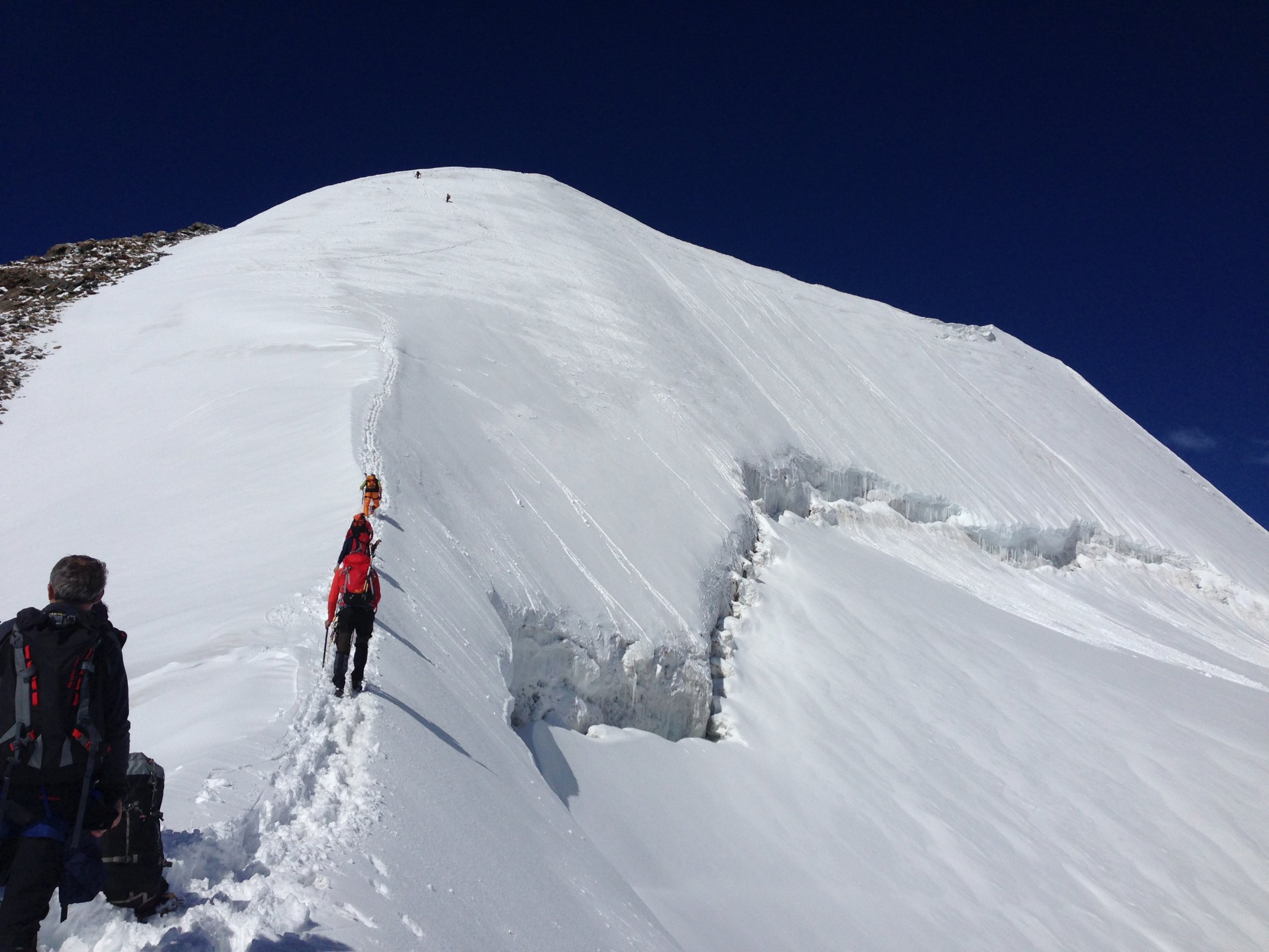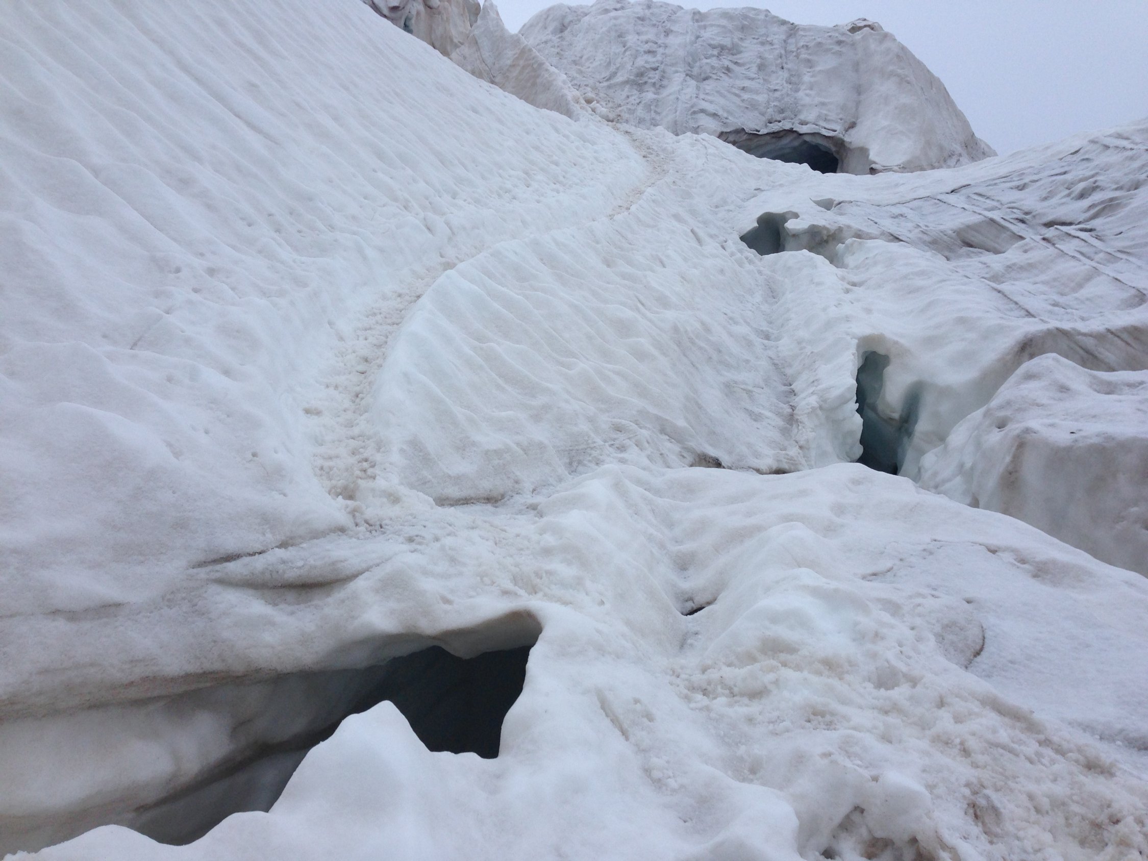 Mit den hohen Temperaturen werden die Schneebrücken sehr heikel. Die Spaltengefahr sollte bei dieser Tour nicht unterschätzt werden. Je nach Wetterentwicklung werden ggf. in nächster Zeit technische Hilfsmittel wie Leitern oder Brücken notwendig werden.