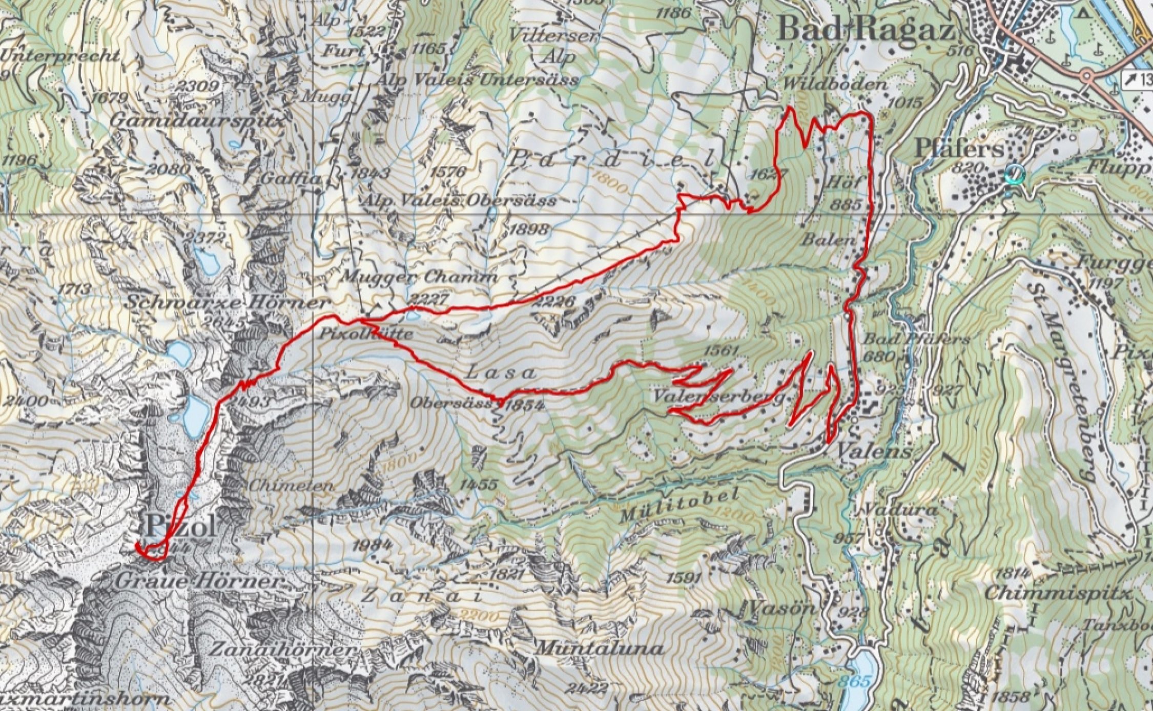 Ab Valens via Obersäss mit Bike Rest zu Fuss zum Gipfel