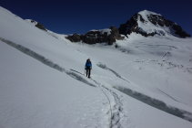 Ideale Verhältnisse mit gutem Trittfirn. Die gfürchige Wächte vor dem Rottalsattel ist weg.