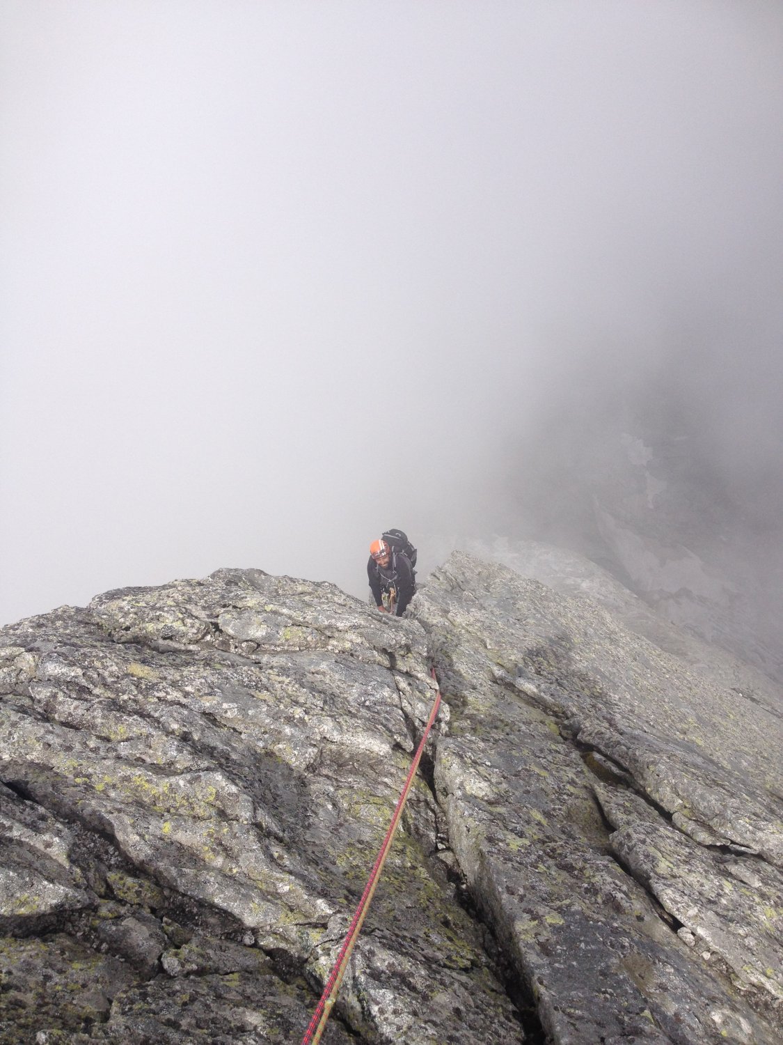 Beste Verhältnisse, Kante trocken, gut zu klettern. Es waren etwa vier Seilschaften unterwegs.