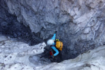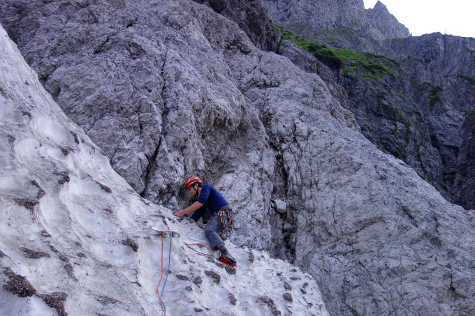 randkluft ist anspruchsvoll, aber machbar unser einstieg ging mit steigeisen und einem eisgerät ohne dieses set up wäre es deutlich schwerer geworden, aber man kommt schon irgendwie rüber:)