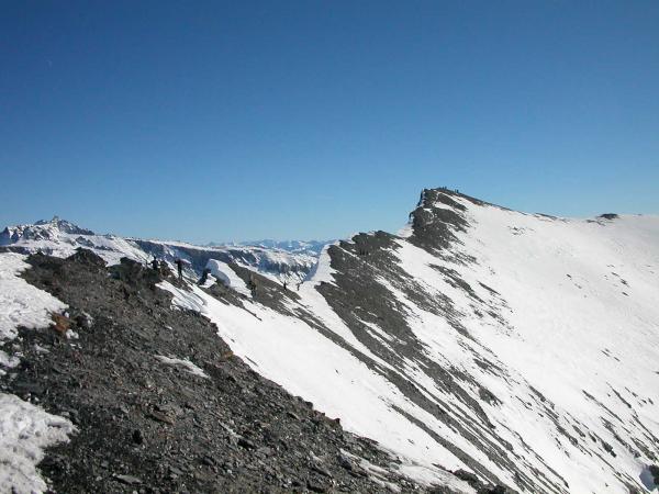 Cassonsgrat fast schneefrei (Pisten sind dort gesperrt). Gletscherregion gut mit Schnee bedeckt. Gipfelgrat schneefrei.