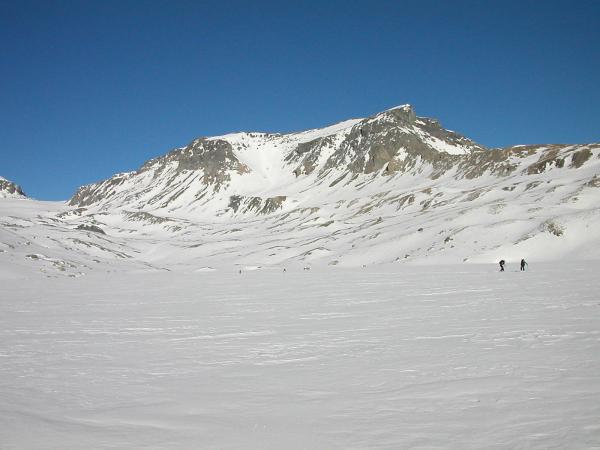 Route 204a. Leichte Skitour ab Cassonsgrat. Abfahrt durch die 35 bis 40 Grad steile SW-Wand, dann weiter über Crap la Tgina und Piste zurück nach Flims.