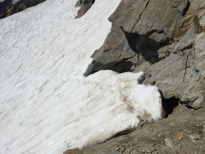 * Firn meist gut; eine grössere Spalte beim Abstieg vom Hangendgletscherhorn; Brücke ist jedoch noch in gutem Zustand