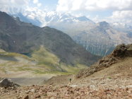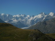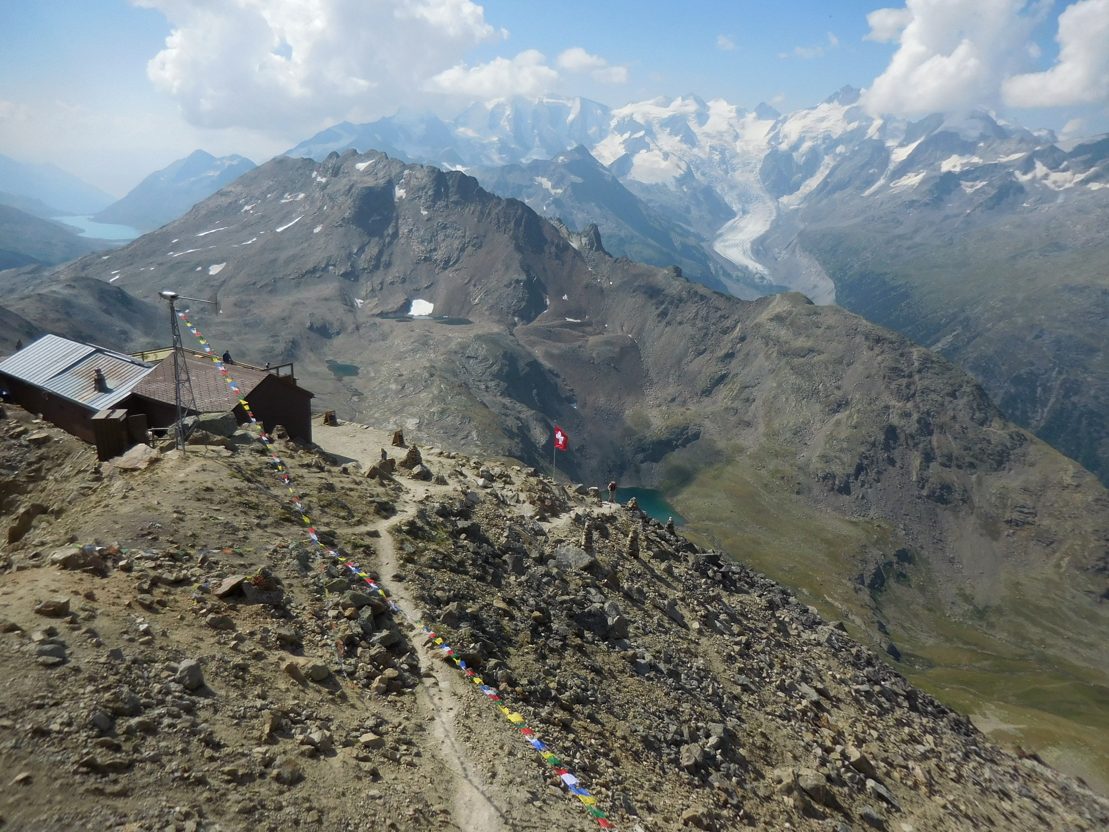 Die Georgys Hütte liegt auf 3170 m , mit einer grossen Terrasse von der aus man die atemberaubende Sicht auf die Eiswelt der Berninakette bewundern kann, die Hütte wird von den Steinböcken gehütet, heute haben wir aber leider keine gesehen.