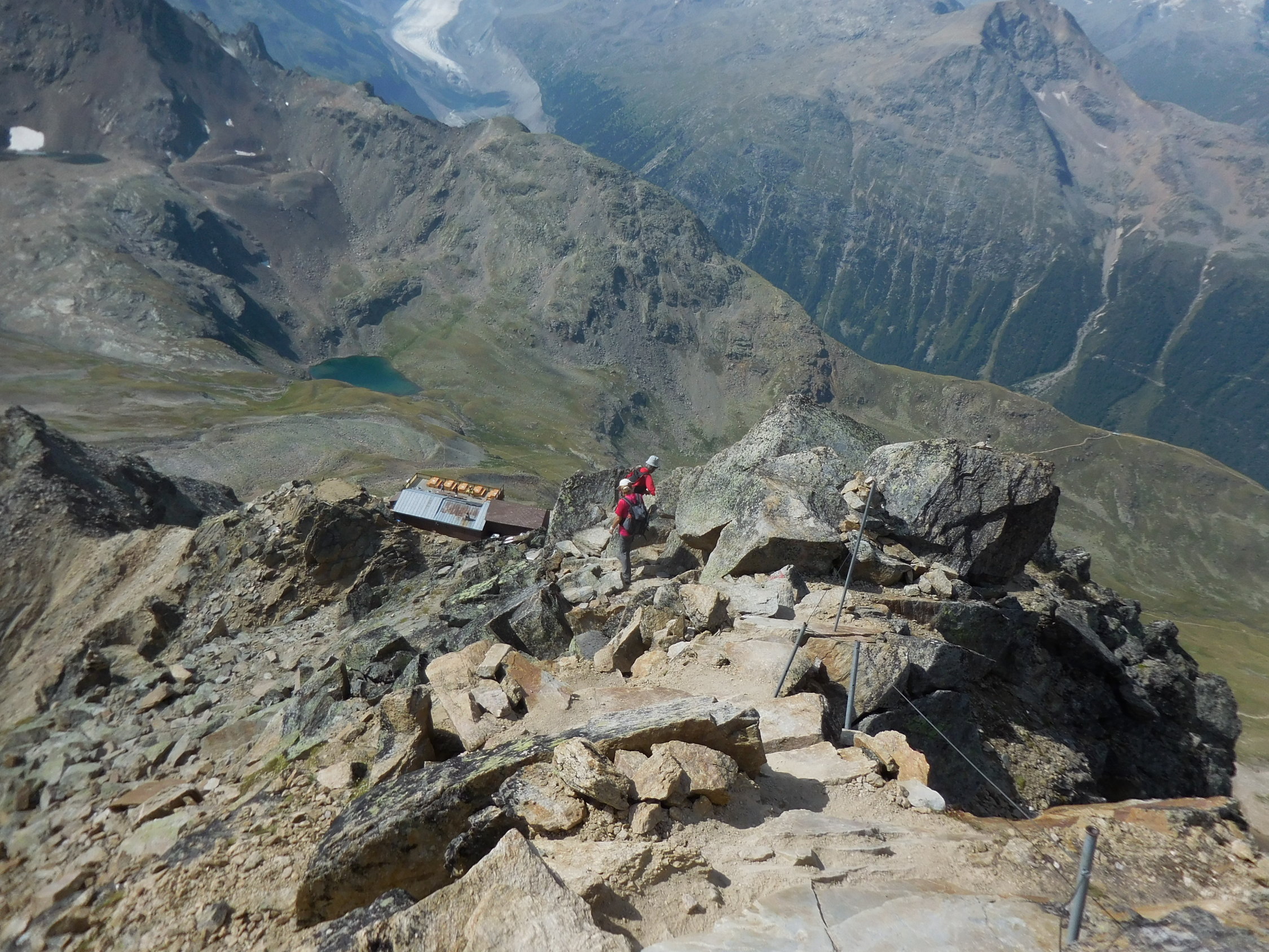 Bleibt bis zu den grossen Schneefällen gut, durchgehend markierter Wanderweg, ohne Gletscher bis Gipfel, kurz unterhalb Gipfel mit Drahtseilen abgesichert.