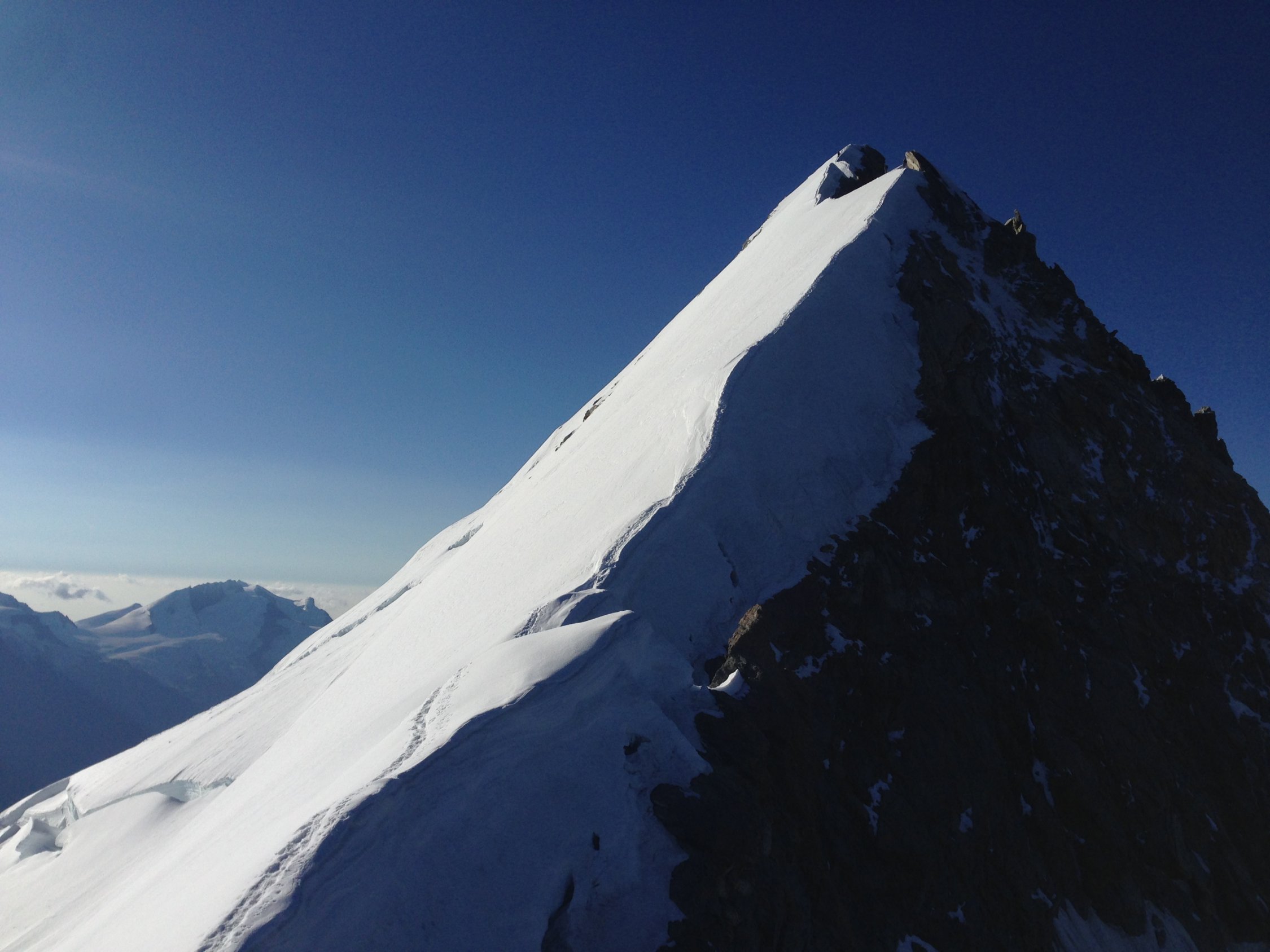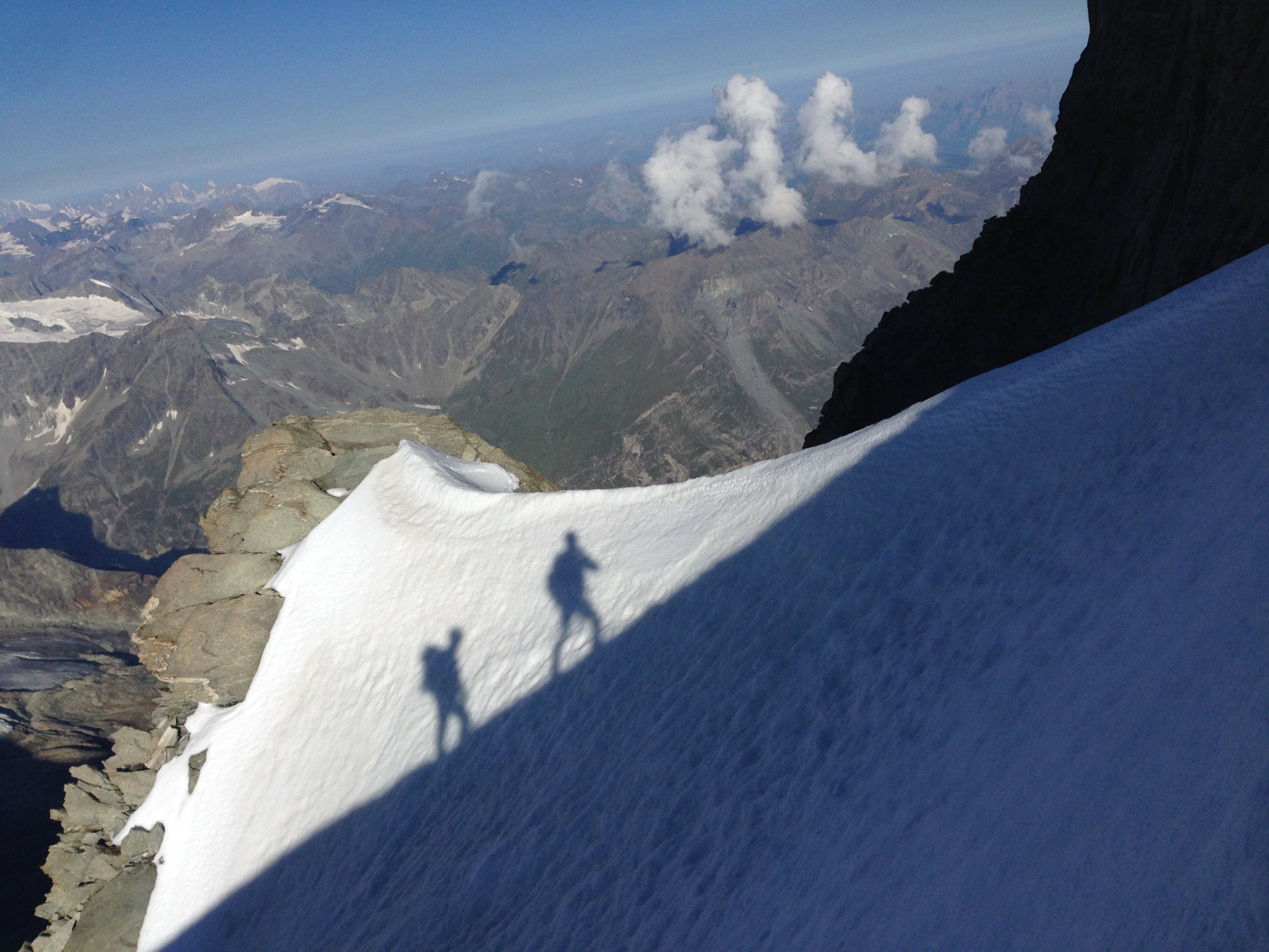 Überschreitung Aufstieg Ostgrat - Abstieg Nordgrat. Trotz der Hitze immer noch gute Schnee / Firnverhältnisse. Auch Dank dem nassen und kalten Sommer 2014 sind die Firnpartien noch nicht blank. Entscheidend ist dass man um die Mittagszeit wieder zurück in der Hütte ist. Bis Mittags kein Steinschlag beobachtet. Somit waren die Verhältnisse perfekt.