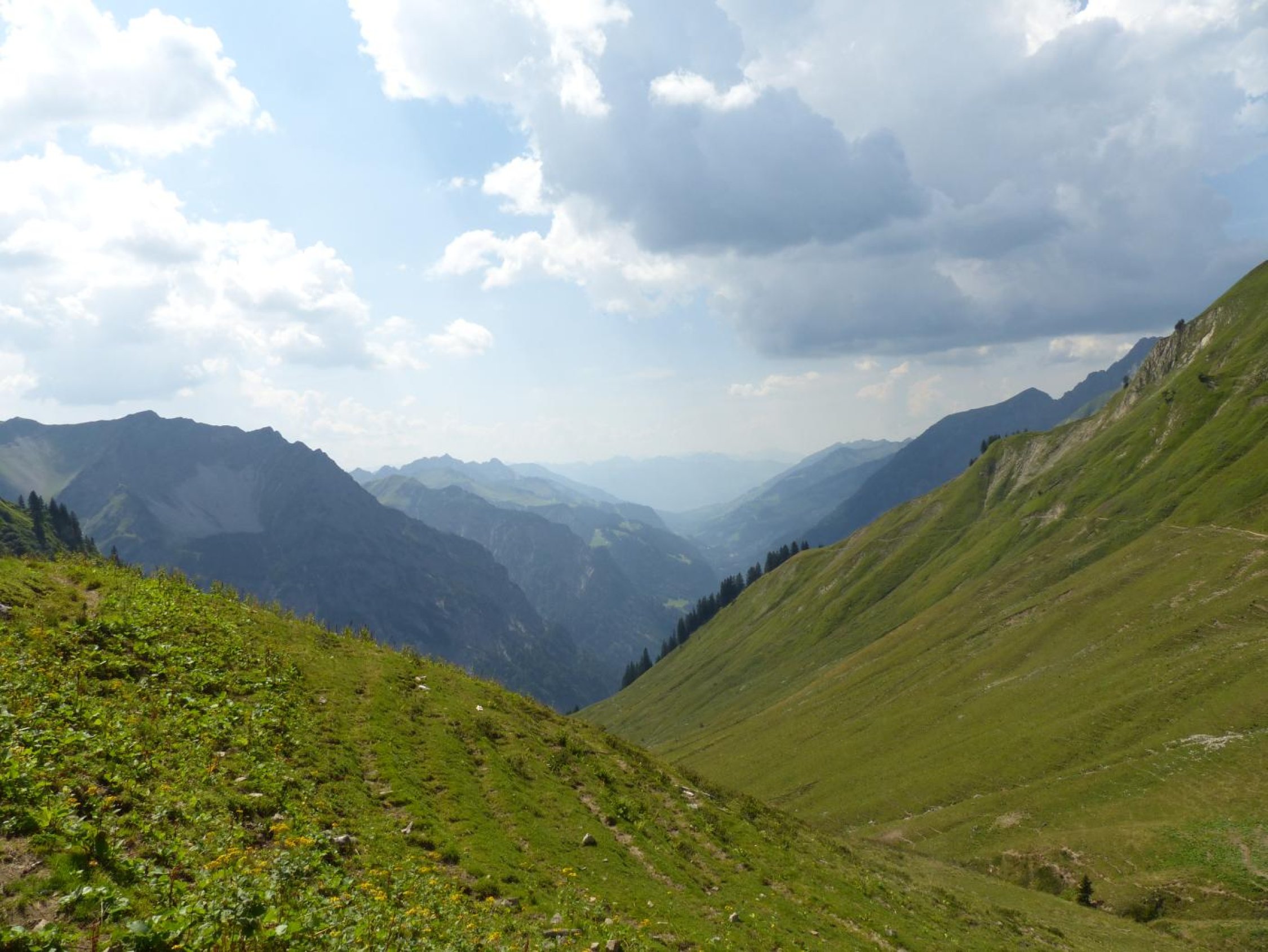 Schöner Aufstieg, bis Biberacher Hütte deutlicher weniger begangen als "Normal" ab Hopfreben (an Hochtannbergpassstraße)