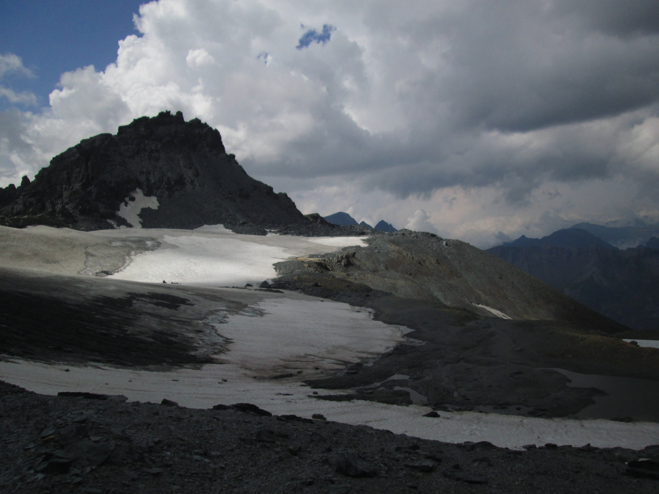 Idealer Nordanstieg bei dieser Hitze. Da sehr trocken im brüchigen Schiefer auch bestmögliche Verhältnisse.