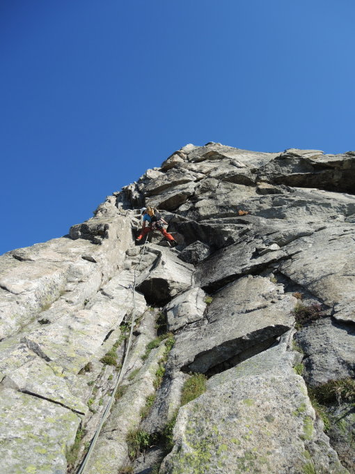 Starke Alternative zum gut frequentierten S-Grat. Athletischere Kletterei mit interessanten Überhängen und Rissen. Angaben im Plaisir ost zur Absicherung stimmt nur in den schwierigeren Längen. Sonst oft keine oder nur 1-2 BH pro SL. Manchmal etwas Spürsinn zum Finden der Muniring-Stände Praktisch! Auch zum Finden des richtigen Startpunktes der Route!