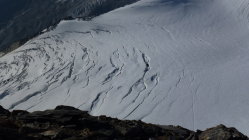 Der Hochbalmgletscher leidet wegen den hohen Temperaturen. Die Spalten öffnen sich merklich, vor allem im unteren Aufstieg zum Windjoch.