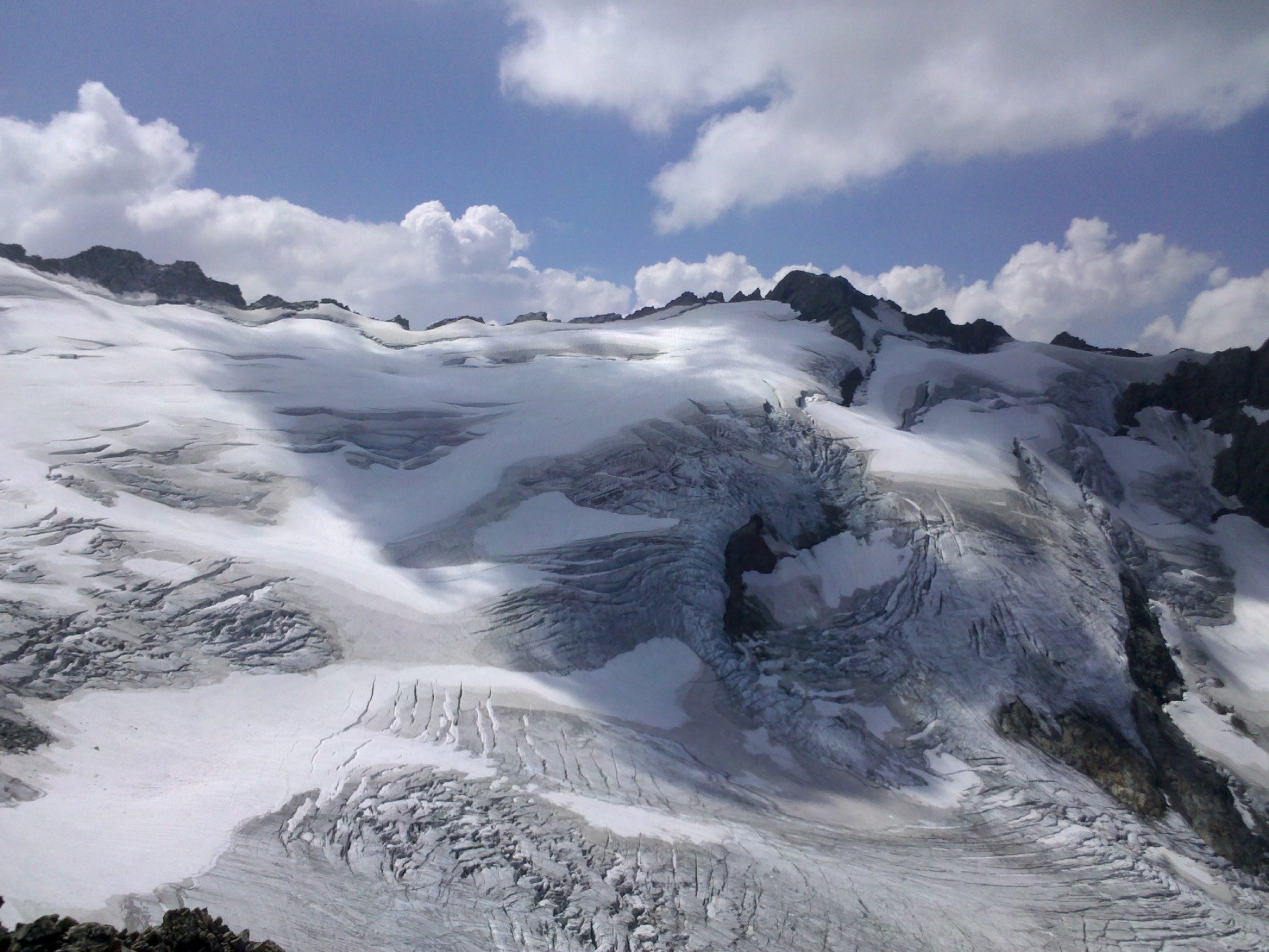 Top Verhältnisse. Gletscher bedeutend ausgeapert, Bergschründe recht gross: in Routenwahl berücksichtigt. Teils auf ausgeaperten Gletscher an Steilstufen mit Eisschrauben fliegend gesichert.