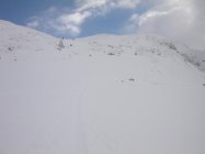 30 cm Neuschnee. Gipfelgrat hatte eine neuschneebedeckte Eisplatte. Jedoch problemlos begehbar. Dadurch können auch die neueren Tourenskier zum Einsatz komen.