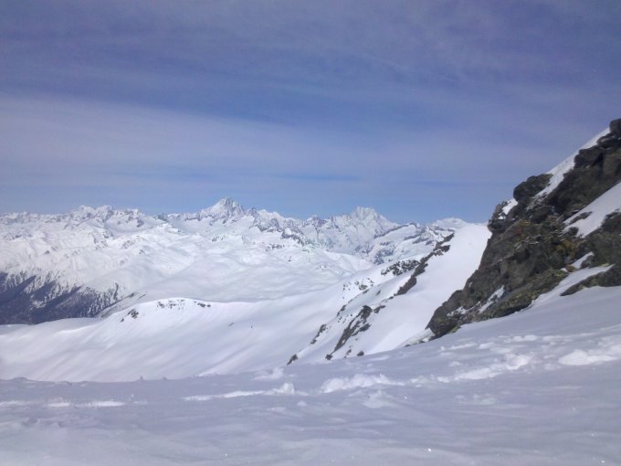 Leider schon sehr sulzig teilweise und warm. Viele spontane Lawinen gesehen. Auf dem kleinen Sattel direkt vor dem Gipfel (höher als Gipfel) stehen geblieben und auf die letzten 15hm verzichtet.
