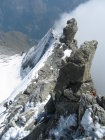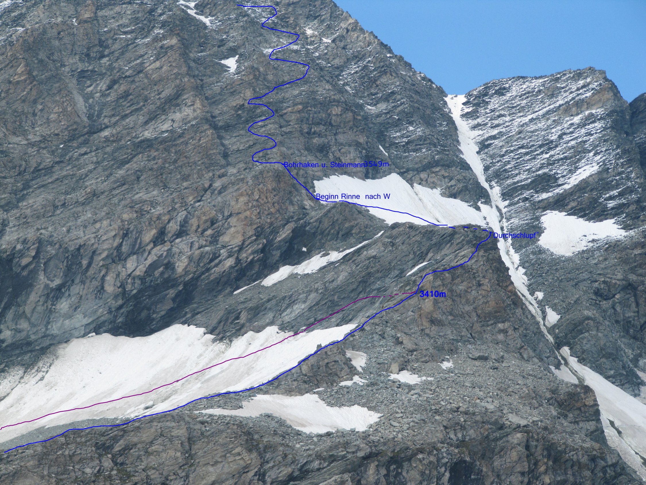 Immer wieder heftiger Steinschlag aus der Süd/Südost-Wand, der aber die im SAC-Führer empfohlene Route nicht berührte.