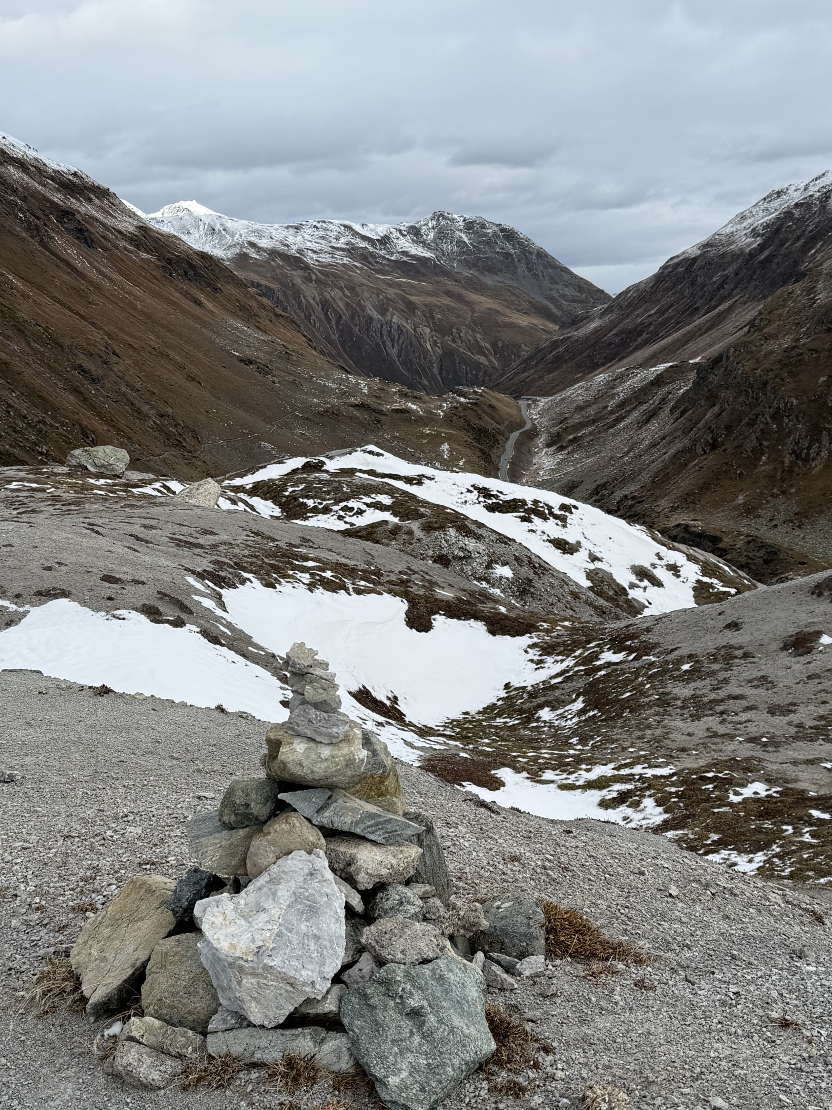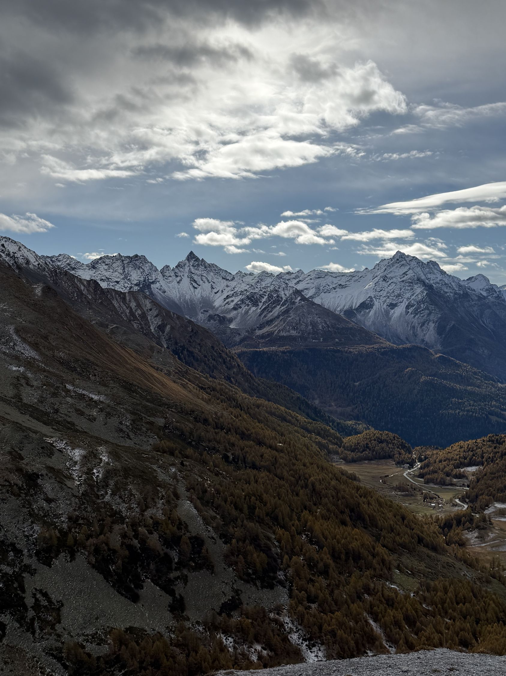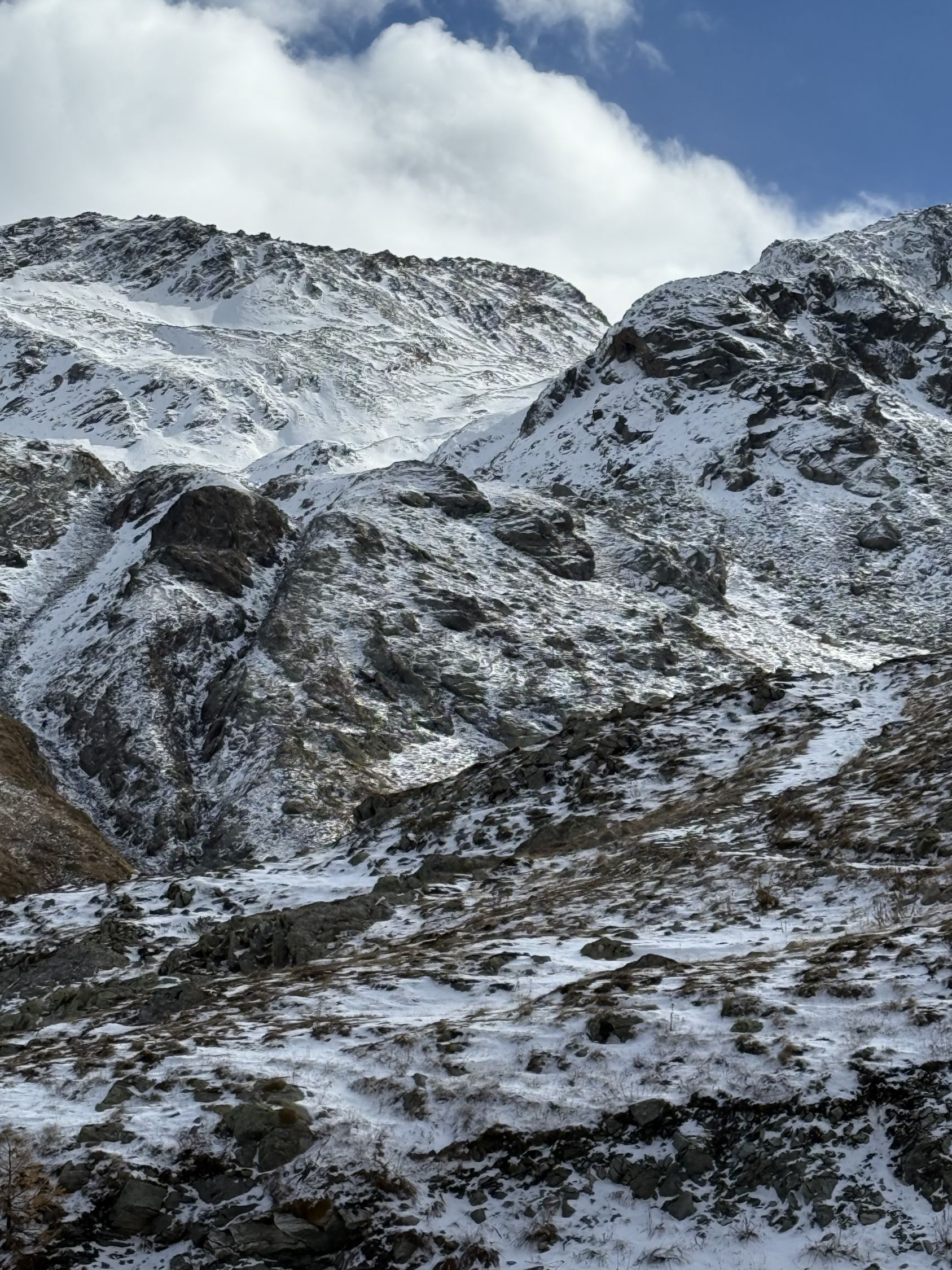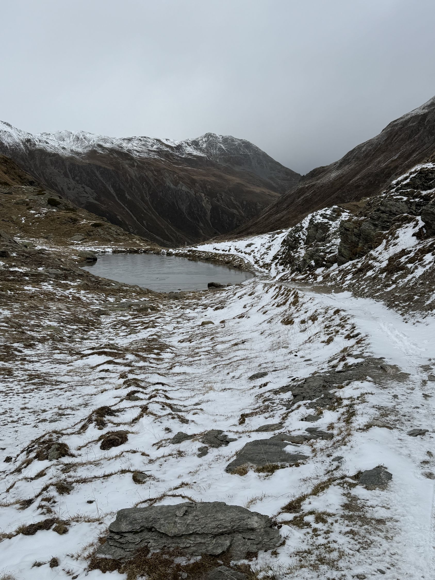 Frostige kurze und einfacheTour auf den markanten Gipsberg südöstlich Fuorcla Minor. T3+. ÖV Tour, Start 9 Uhr Forcola di Livigno, erster Bus ab Bernina Albergo, minus 4 Grad, starker Westwind, leicht bewölkt. Der rotweiss markierte Wanderweg hatte stellenweise Eis und Schnee, ab Höhe 2415 runter zum Seelein und unschwierig die Westflanke hoch zum Gipfel. Abstieg mit Grödel wegen Eis. Mittagessen im Tridentina Forcola di Livigno, hervorragend und preiswert, inkl. Sforzato und Panna Cotta. Rückfahrt mit Bus alle zwei Stunden noch bis Sonntag, 26.10.25.