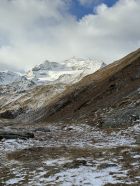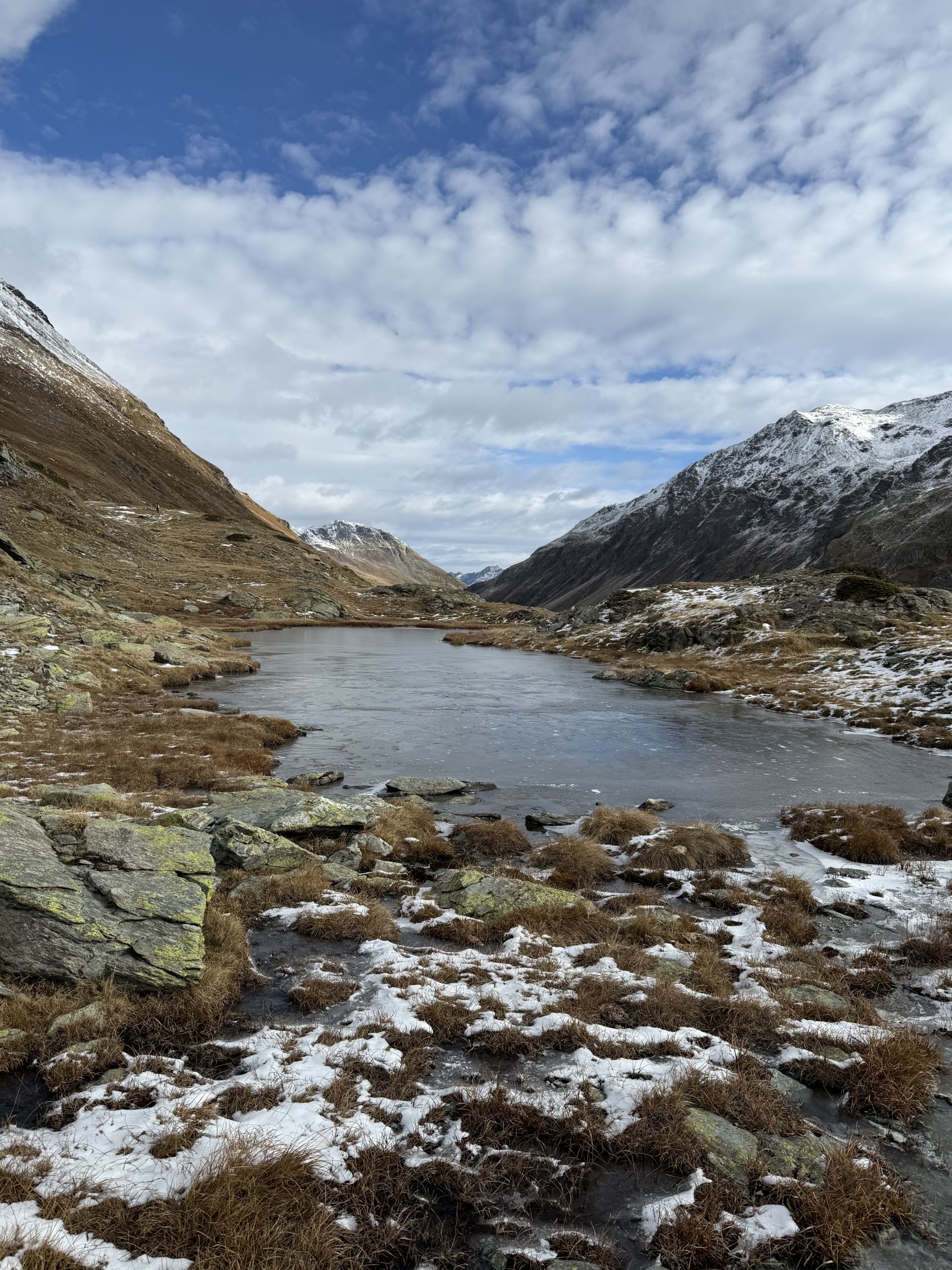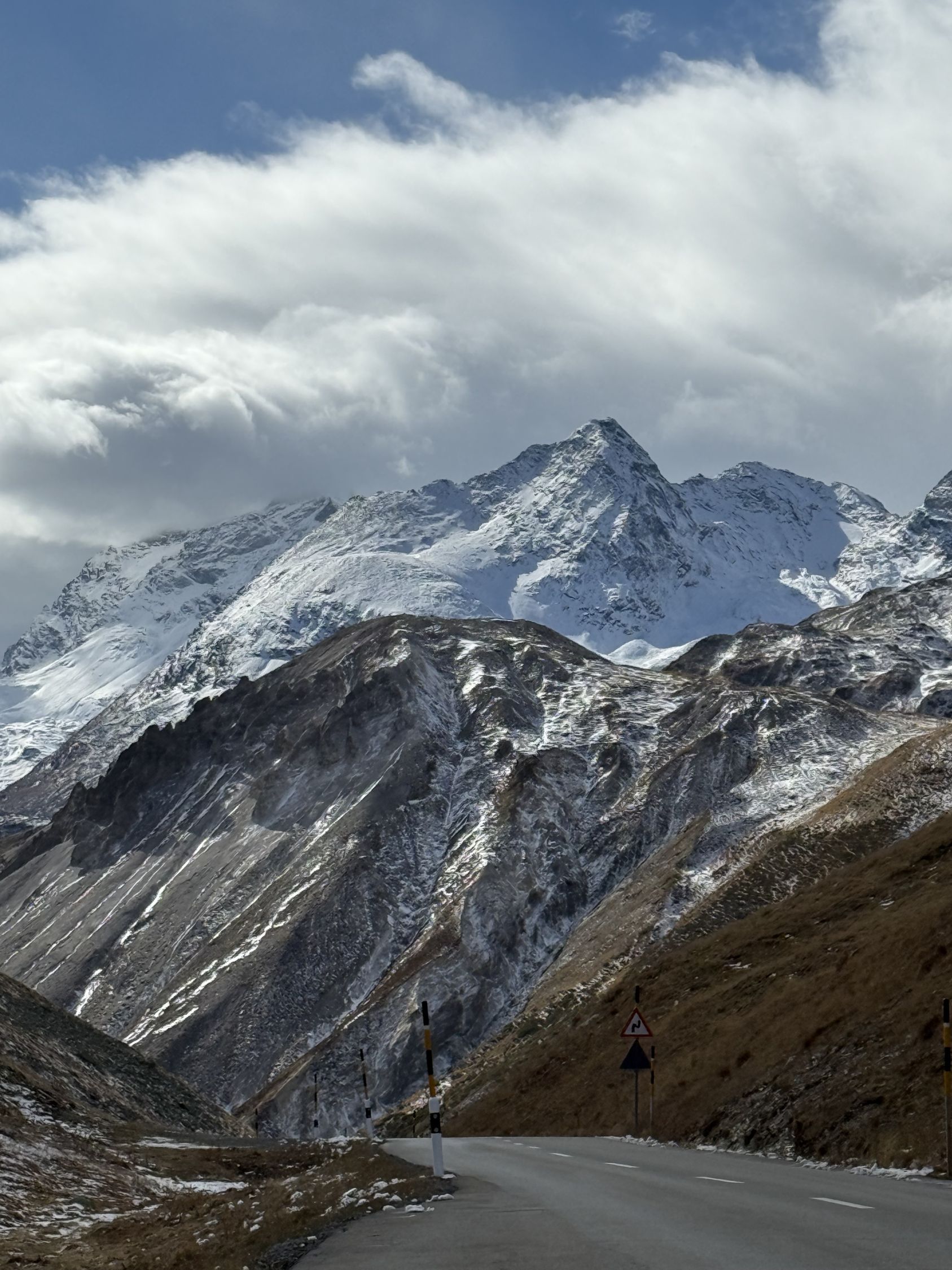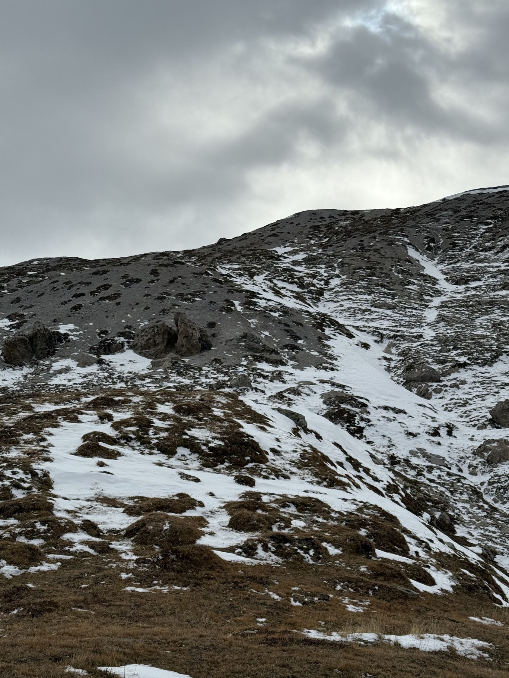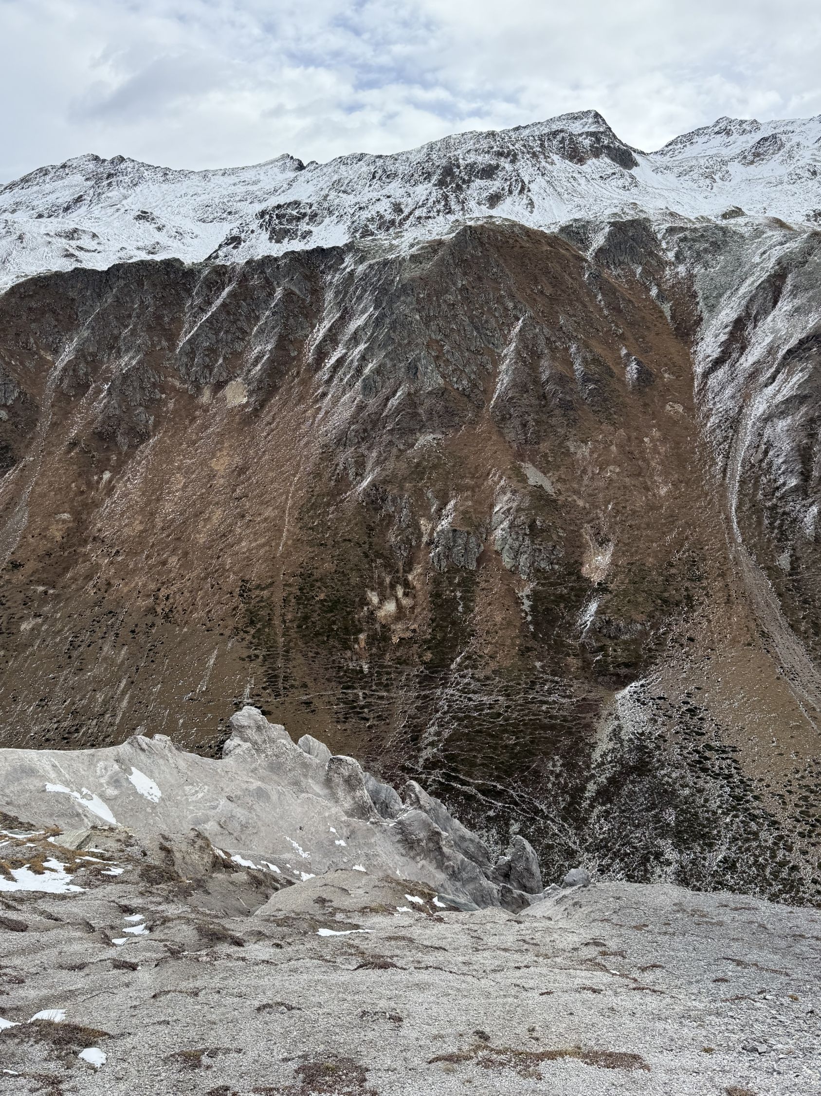 Frostige kurze und einfacheTour auf den markanten Gipsberg südöstlich Fuorcla Minor. T3+. ÖV Tour, Start 9 Uhr Forcola di Livigno, erster Bus ab Bernina Albergo, minus 4 Grad, starker Westwind, leicht bewölkt. Der rotweiss markierte Wanderweg hatte stellenweise Eis und Schnee, ab Höhe 2415 runter zum Seelein und unschwierig die Westflanke hoch zum Gipfel. Abstieg mit Grödel wegen Eis. Mittagessen im Tridentina Forcola di Livigno, hervorragend und preiswert, inkl. Sforzato und Panna Cotta. Rückfahrt mit Bus alle zwei Stunden noch bis Sonntag, 26.10.25.