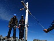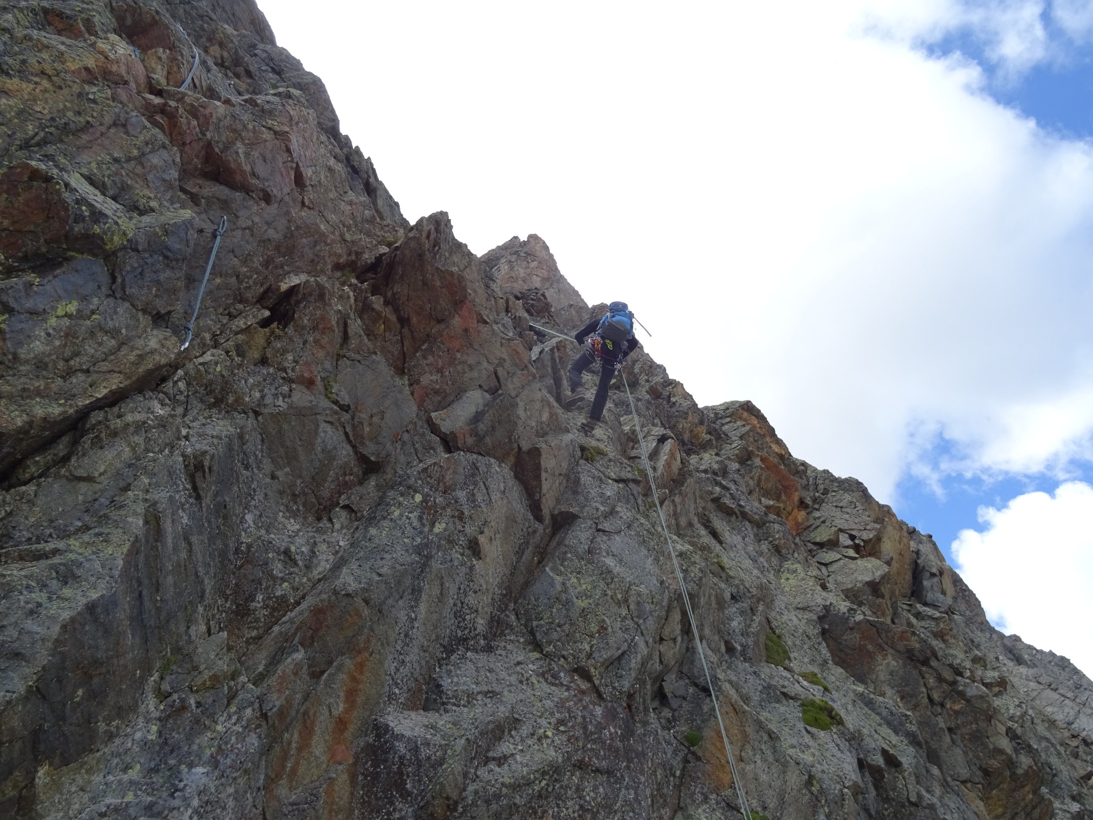 sehr gut! den neuen Einstieg genommen, nicht den Originaleinstieg über das Firnfeld bzw. im Moment "Steileisfeld": weiter unten am Grat über eine Stelle III und eine Stelle IV- zur Einmündung in die Originalroute; Fels meist sehr kompakt, kein Schnee in der Route; Abstieg gleich Aufstieg;