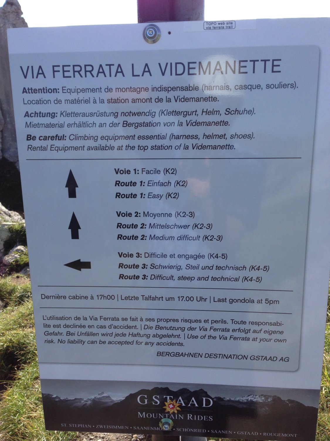 Schönes am Morgen bereits etwas kaltes, dann warmes Wetter. Darum haben wir den mittelschwere Klettersteig am Morgen gemacht. Den schweren Klettersteig (KS5) mit Nordausrichtung am Nachmittag. Der Klettersteig ist gut abgesichert und bietet eine schöne Aussicht. Der Abstieg erfolgt über den einfachsten Klettersteig (voie 1). Der Gipfel des Rüblihorn wird über eine kurze Gratwanderung erreicht und bietet mit Gipfelkreuz eine schöne Aussicht. Achtung: Die Videmanette Gondeln fahren nur am Wochenende.